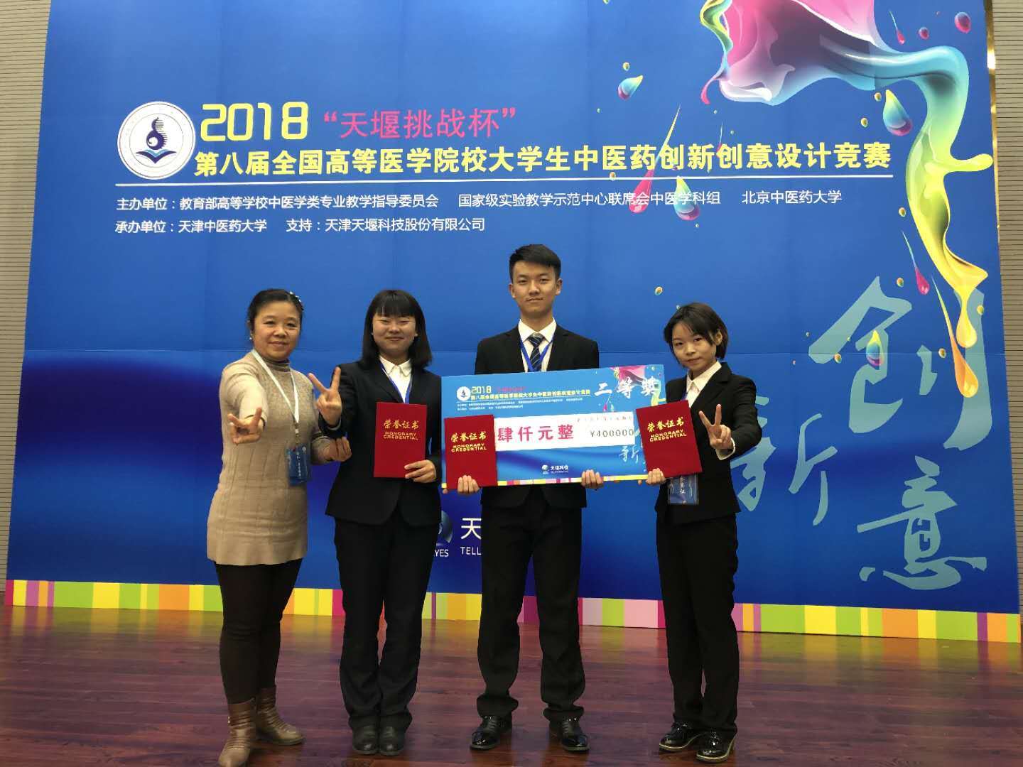 2018年12月22日,2018“天堰挑战杯”第八届全国高等医学院校大学生中医药创新创意设计竞赛总决赛在天津举行。由中西医结合学院教师张磊指导,学生程翰文、王俊秋、罗蓓的作品“3D打印结合数字优化设计的一种可调节的肩锁关节脱位固定器”荣获此次比赛二等奖。