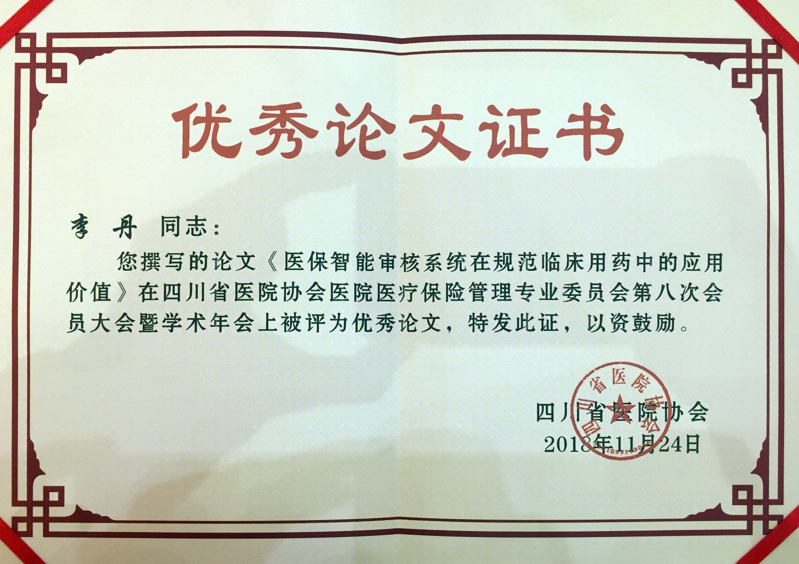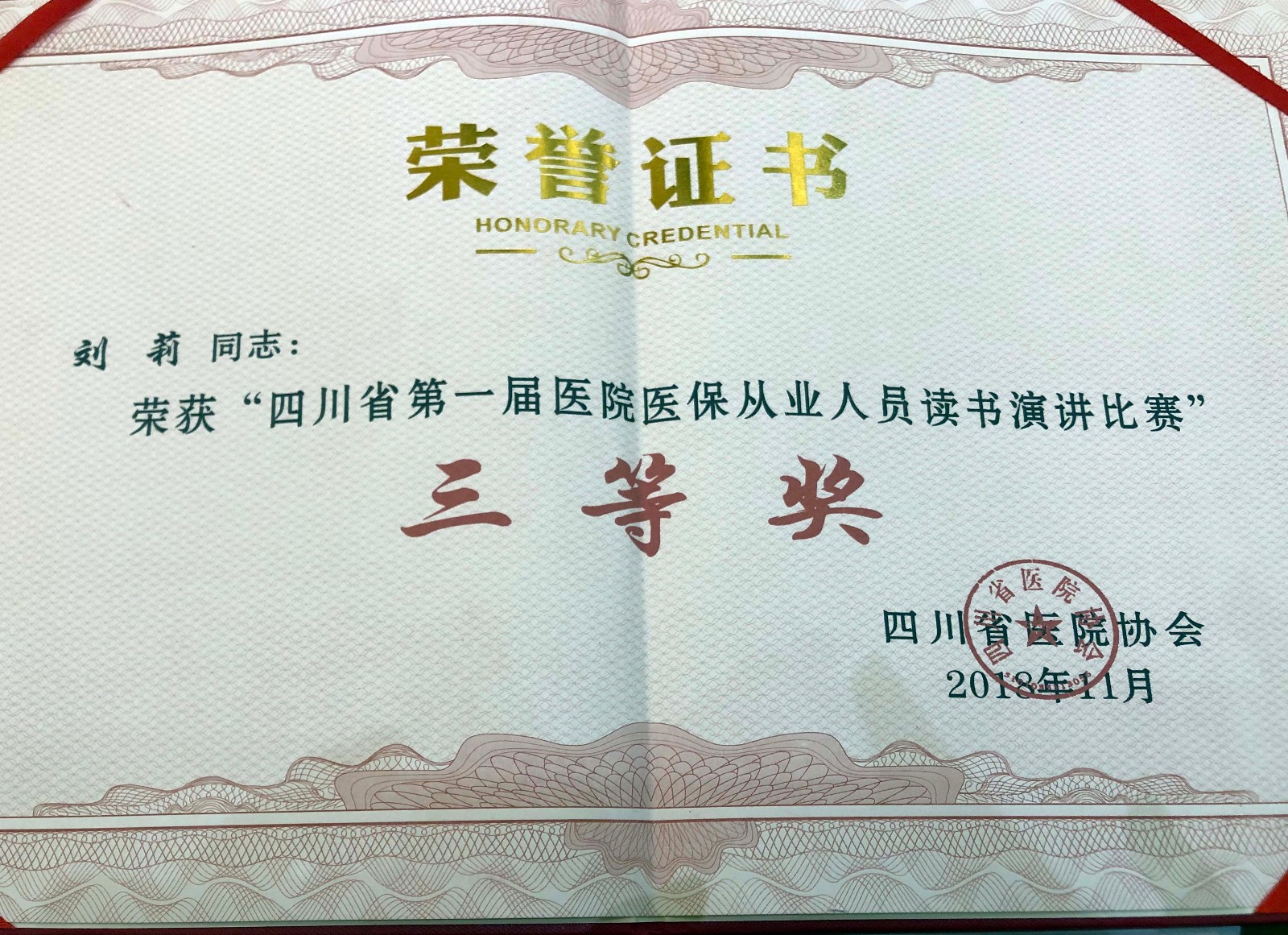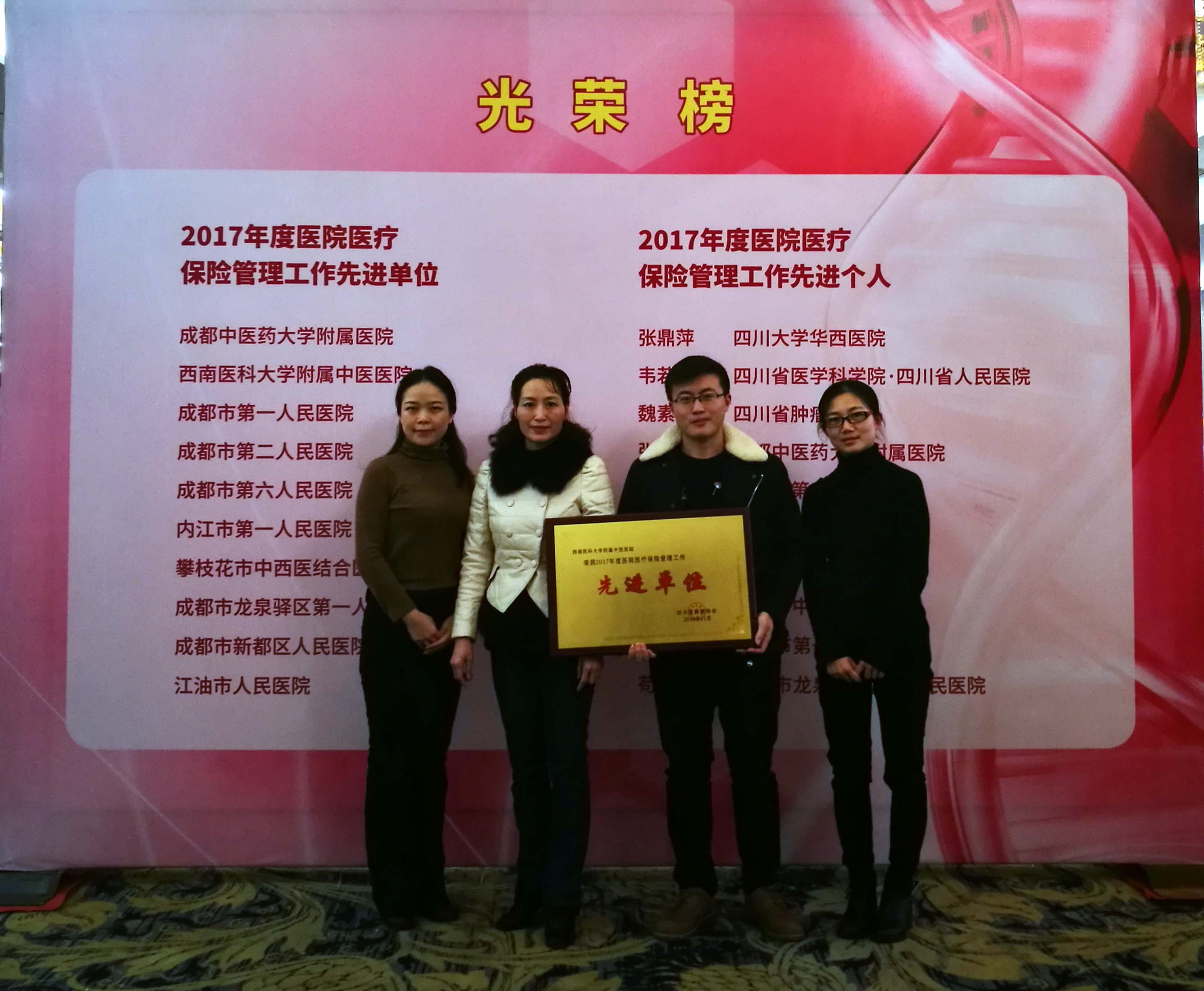 2018年11月23-24日,四川省医院协会医院医疗保险管理专业委员会第八次会员大会暨学术年会在成都举行。我院荣获“2017年度医院医疗保险管理工作先进单位”称号;医保办主任刘莉,荣雪分别作了《平凡的世界》《苦难辉煌》演讲,荣获“四川省第一届医院医保从业人员读书演讲比赛”三等奖;李丹撰写的论文《医保智能审核系统在规范临床用药中的应用价值》获2018年医院医疗保险管理“优秀论文”。