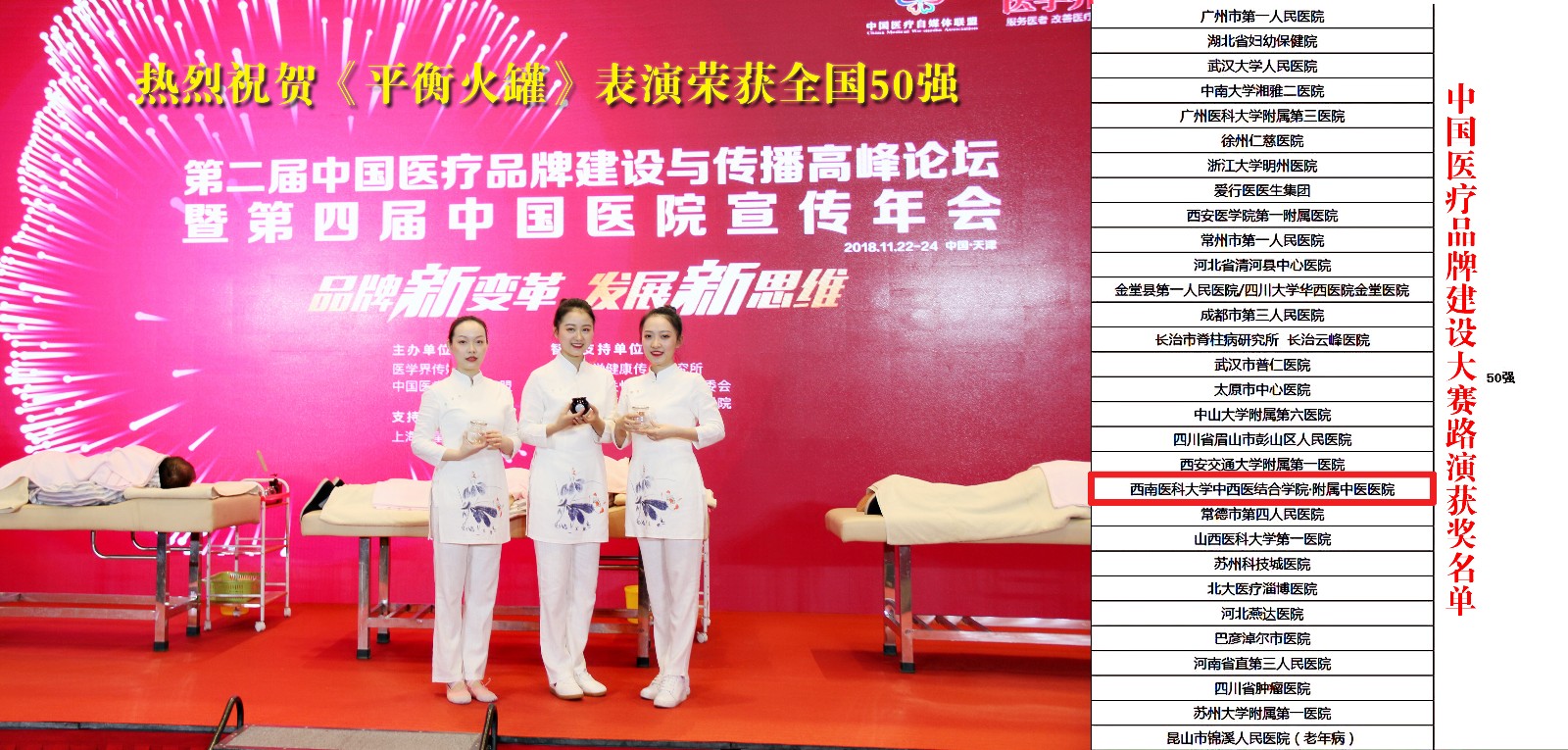 在大会的第二届医疗品牌建设大赛案例路演上,我院表演的《平衡火罐》荣获全国50强。