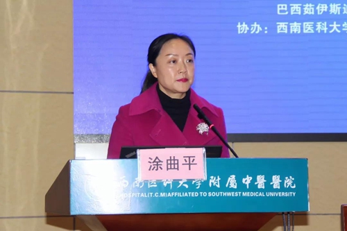 涂曲平讲话,她介绍了泸州市的城市发展概况及卫生资源现状,希望与会人员珍惜机会,认真学习,相互交流,共同弘扬传承中医药事业,推动“一带一路”工作的发展进程。