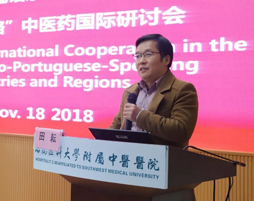 2018年11月18日,中国-葡语系国家和地区“一带一路”中医药国际合作研讨会暨中医特色诊疗技术、葡萄牙语培训班在我院举行,国家中医药管理局国际合作司副司长吴振斗,中国科学技术交流中心欧洲处处长董克勤,四川省中医药管理局副局长米银军,泸州市卫生和计划生育委员会主任涂曲平,西南医科大学副校长何涛,葡萄牙米尼奥大学生物系主任Alberto Dias教授等葡萄语系国家和地区的外宾代表以及我院领导参加了开幕式。开幕式由我院副院长李志主持。