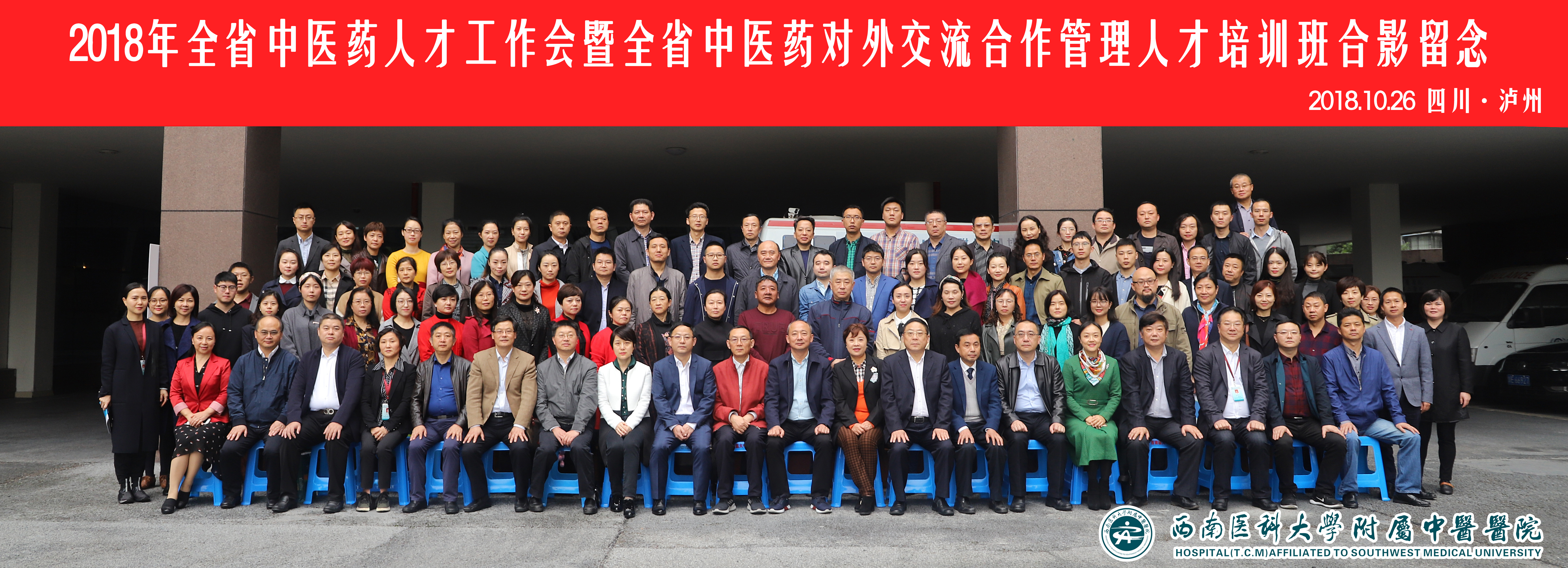 2018年10月26日,由四川省中医药管理局主办,四川省中医药发展服务中心和我院承办的2018年全省中医药人才工作会暨全省中医药对外交流合作管理人才培训班在我院举行,四川省中医药管理局党组书记、局长田兴军,泸州市人民政府副市长马宗慧,省委组织部人才处处长刘建贤,省人力资源社会保障厅二级巡视员、专业技术人员管理处处长付林,省外事侨务办公室出国(境)管理处副处长陈冰洁,西南医科大学副校长刘广益等领导以及四川省各市州、局属单位等相关人员和四川省中医药人才工作领导小组成员,我院党委书记王琳等参加了会议。会议由四川省中医药管理局党组成员、副局长米银军主持。