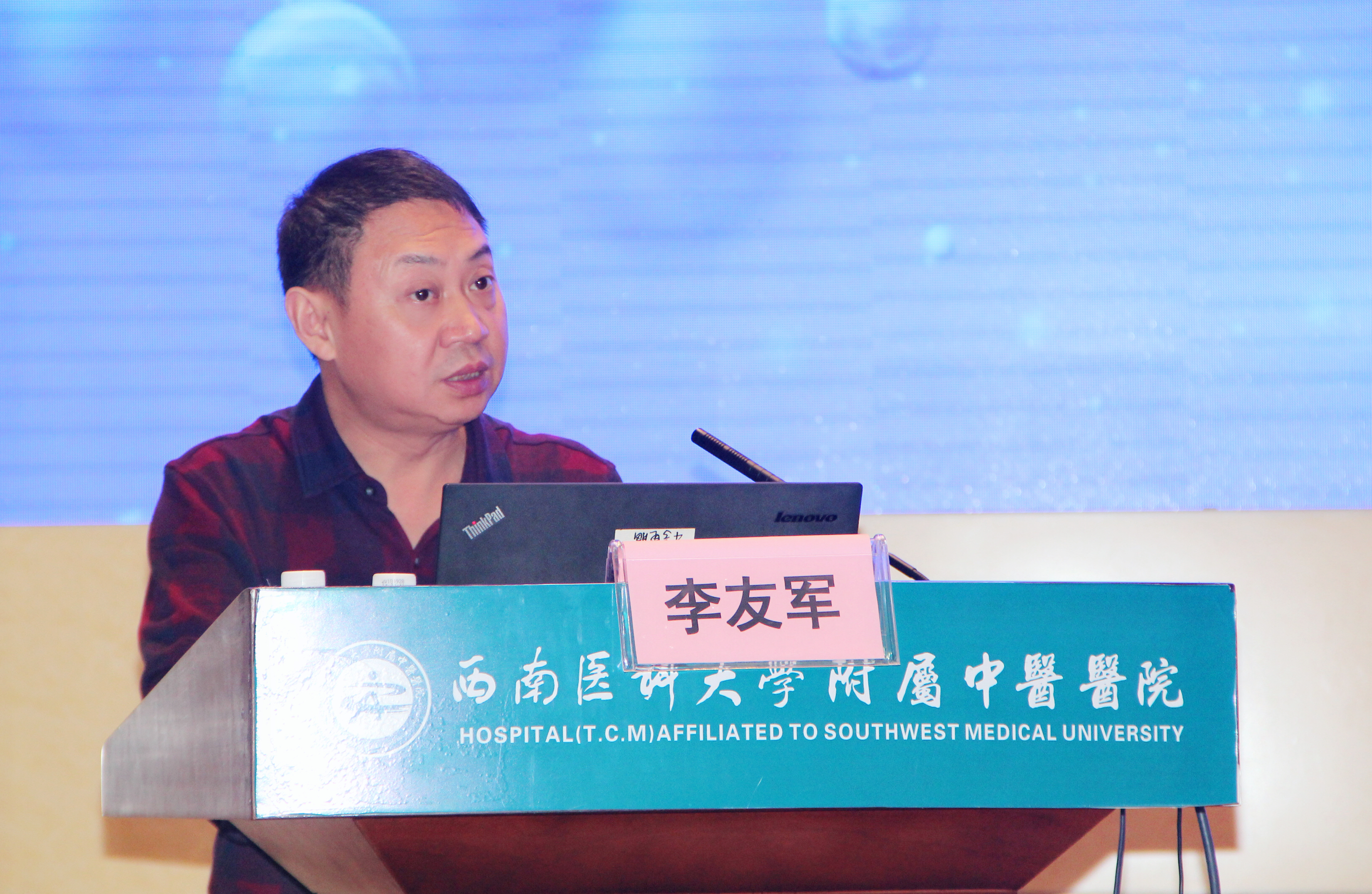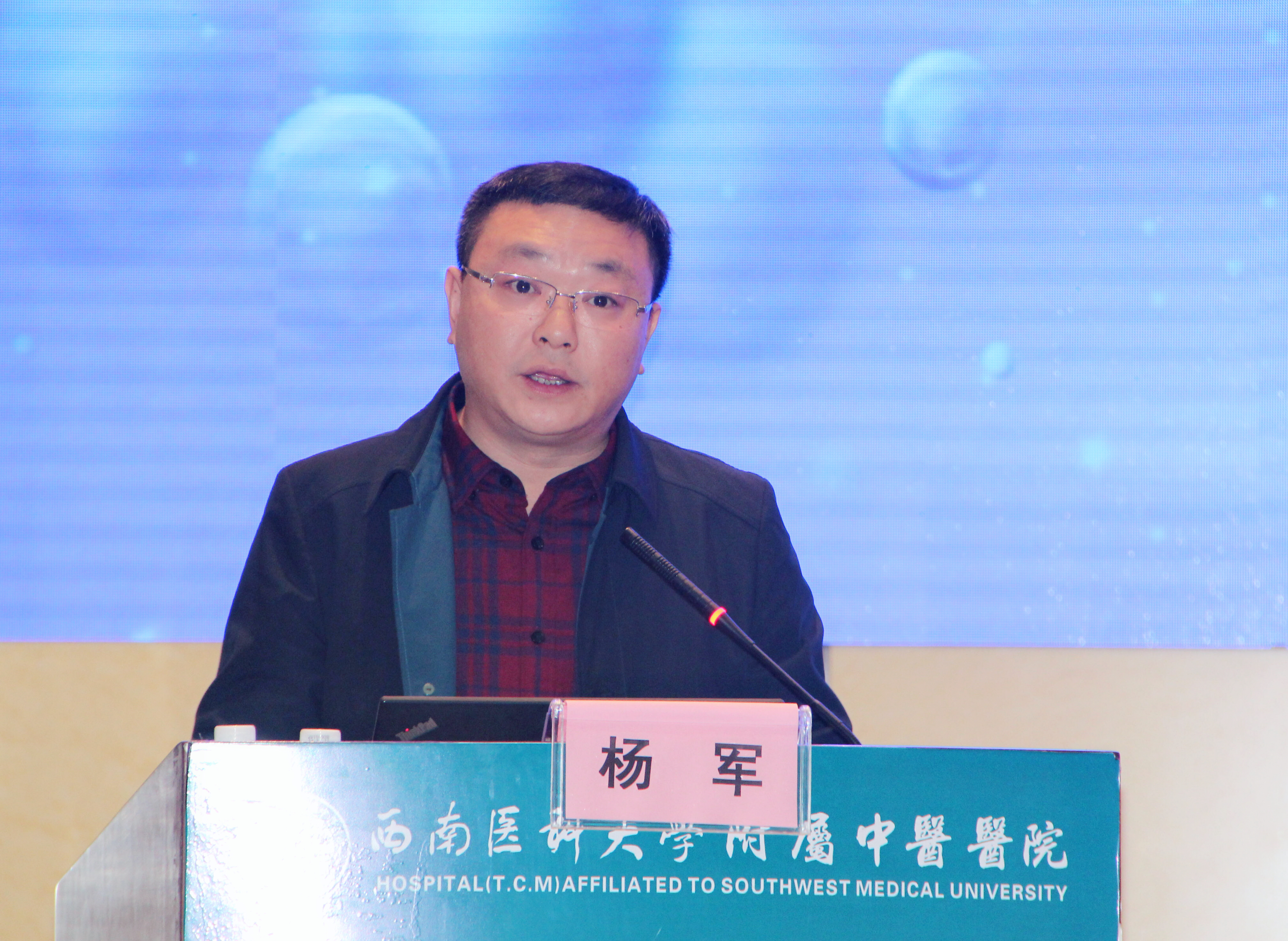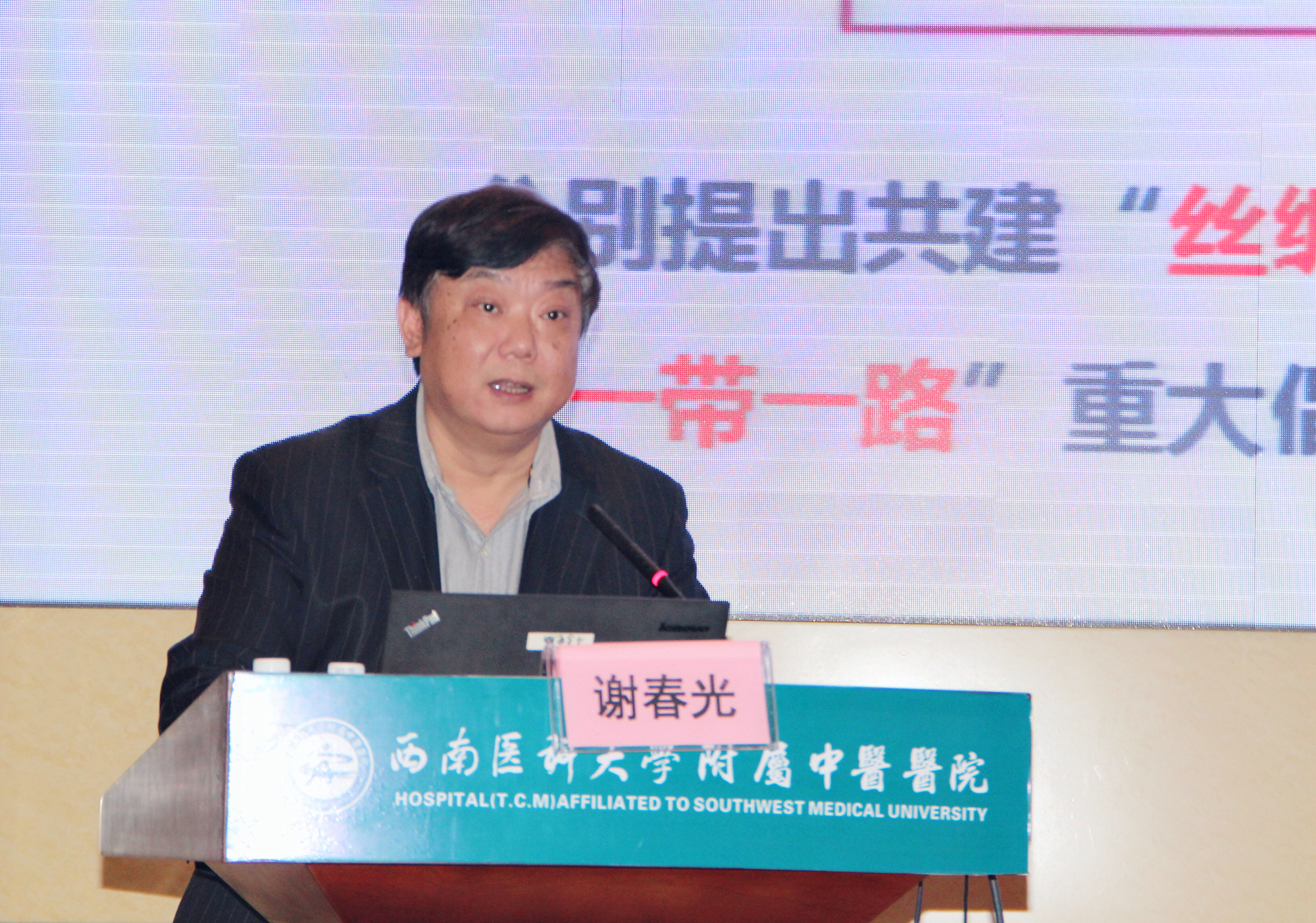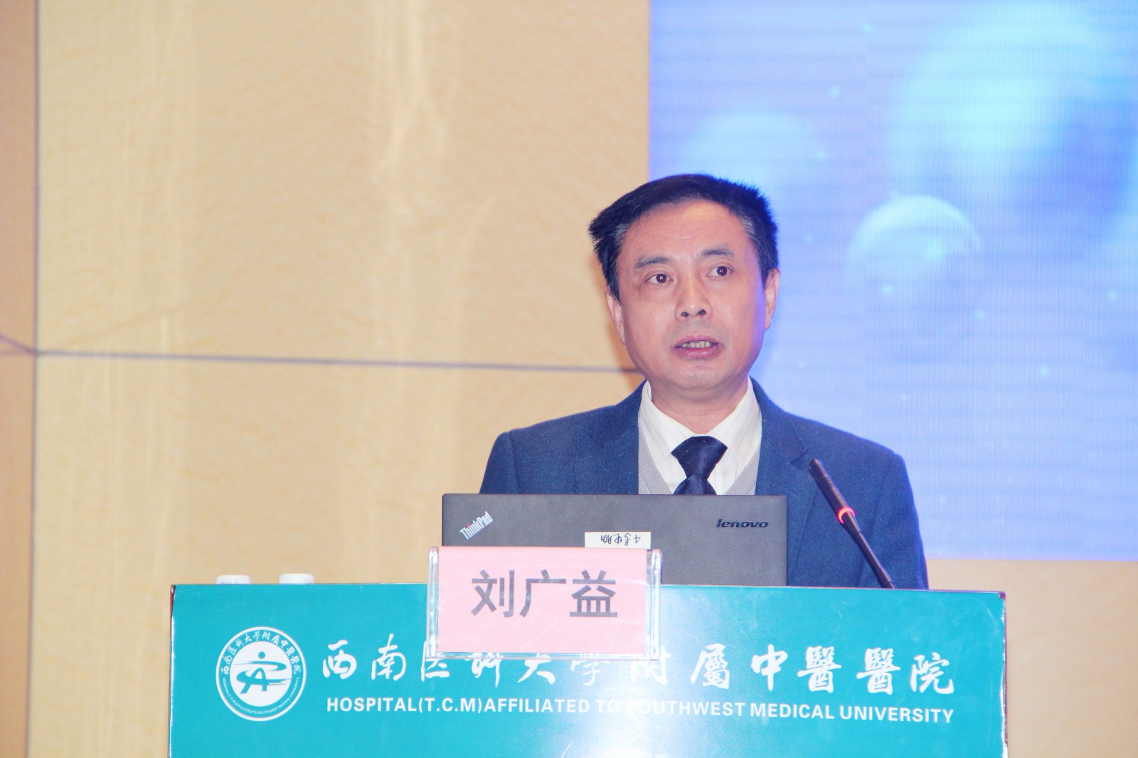 刘广益致辞,他介绍了西南医科大学基本情况和中西医结合学院·附属中医医院人才培养情况,并表示将共同努力为四川省中医药事业的发展作出新的贡献。