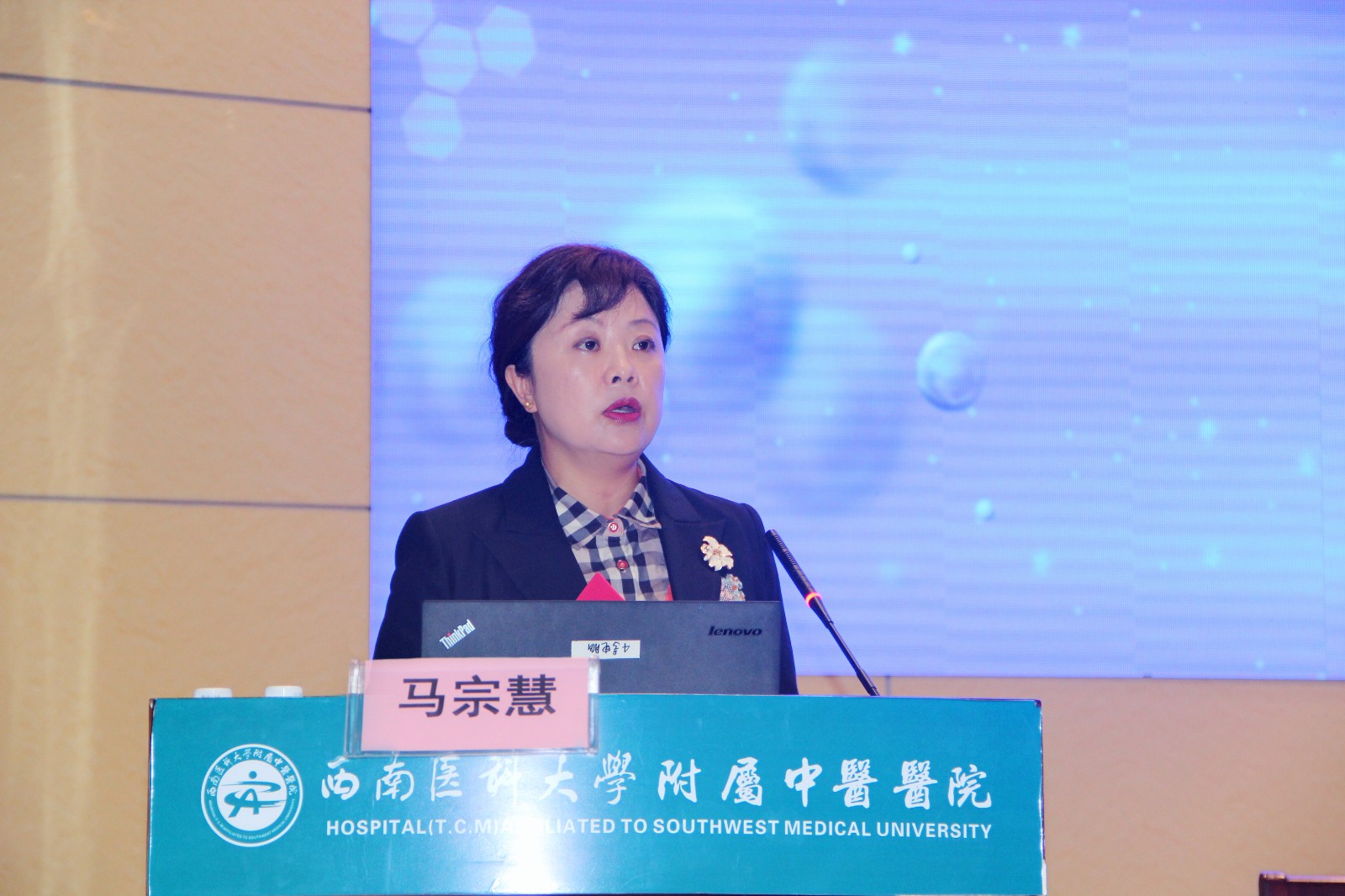 马宗慧致辞,她介绍了泸州市基本情况和医疗卫生资源情况。