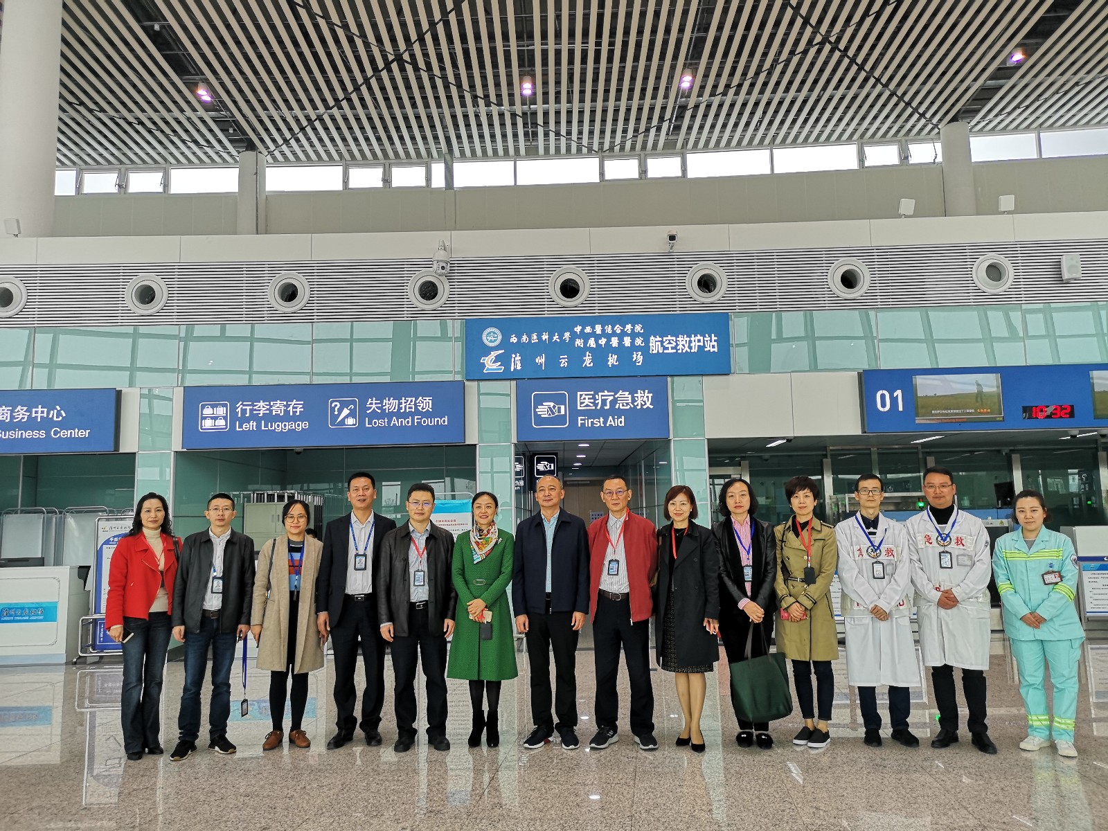 会后,四川省中医药局党组书记、局长田兴军,四川省人力资源社会保障厅二级巡视员、专业技术人员管理处处长付林在泸州市卫生计生委主任涂曲平、我院副院长李志等陪同下调研了我院泸州云龙机场医疗航空救护站。