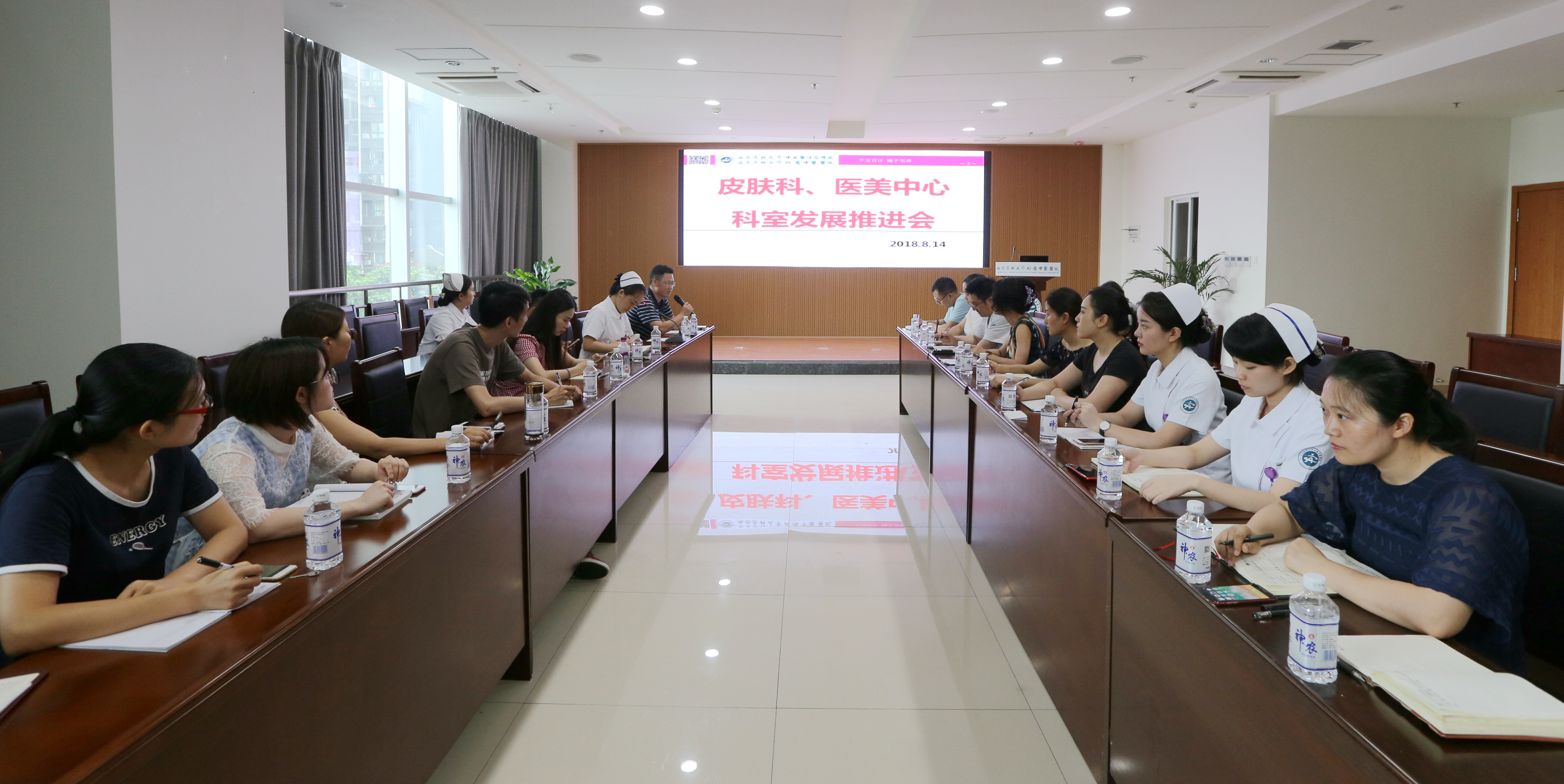 2018年8月14日,我院召开了皮肤科和医学美容中心科室发展推进会,医院副院长李志,相关职能部门负责人及皮肤科、医学美容中心负责人等参加了会议。会议由李志主持。