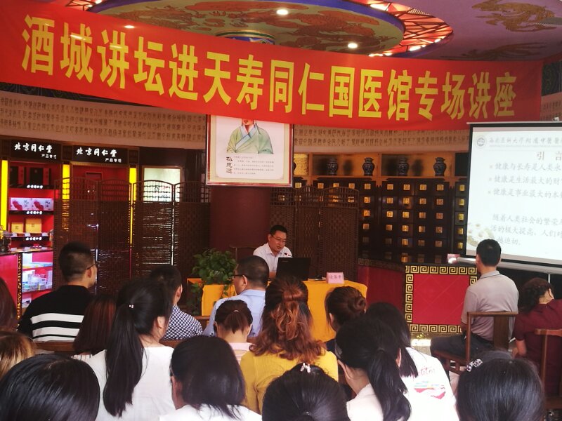 2018年6月13日,我院院长助理、治未病中心主任、合江县中医医院院长徐厚平博士作客《酒城讲坛进企业---天寿同仁国医馆专场讲座》,应邀分别为天寿同仁国医馆全体职工作了《党建工作与企业文化》《科学进步与养生》专题讲座。