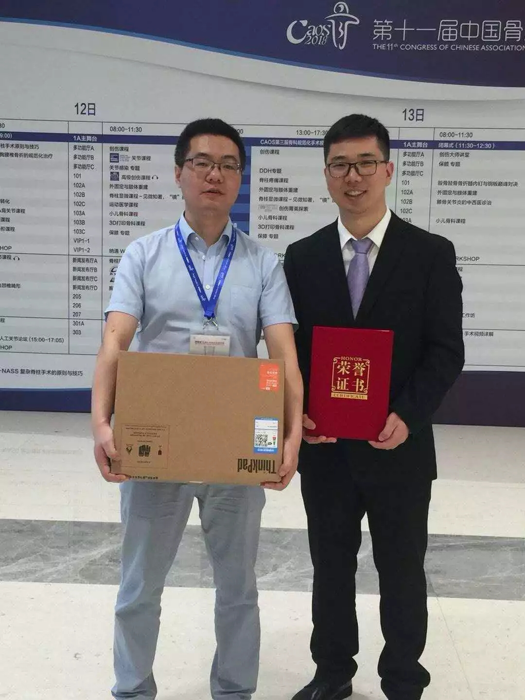 2018年5月11日,“万里挑一”第二届全国骨科医师规范化病例大赛在浙江举行,西南医科大学附属中医医院骨伤科(矫形·儿骨·手外组)罗旭超主治医师演讲的《7岁幼儿小腿火车碾压离断后再植成功》荣获二等奖。 比赛现场 罗旭超(右)