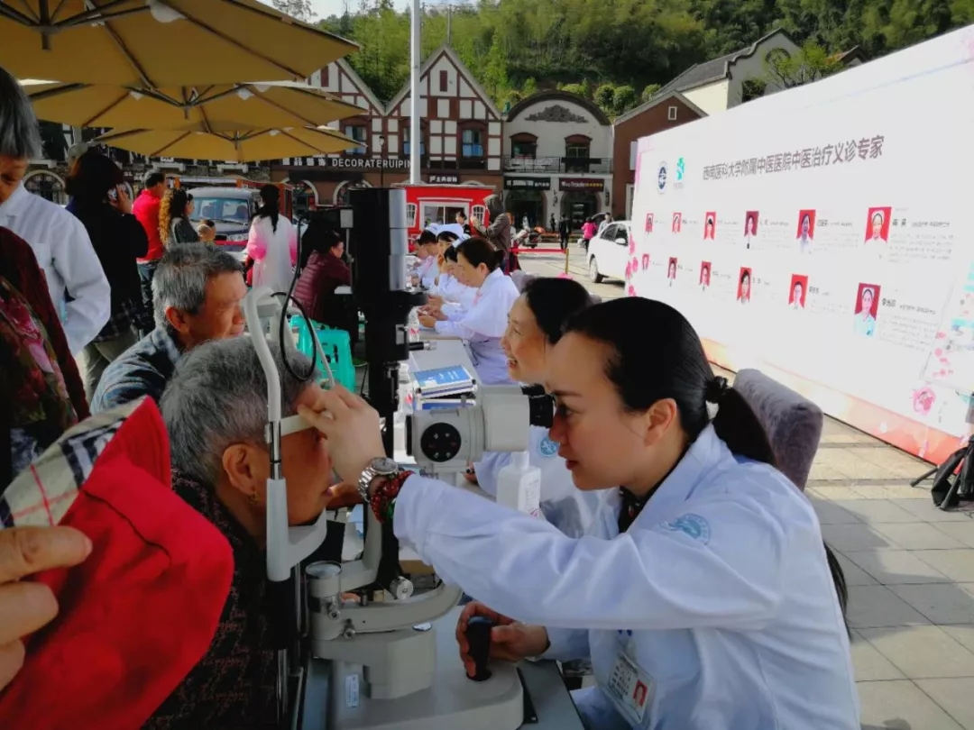 2018年5月12日,西南医科大学附属中医医院“中医护理服务 百姓健康助力”义诊活动走进天鹅堡分院。眼科主任牟琳副教授,李群英教授,呼吸内科主任助理汤俊起主治医师、骨伤科(脊柱组)主治医师李东东、针灸·康复科主治医师王莹以及中医护理等20余名专家为大家免费诊断。牟琳为群众检查