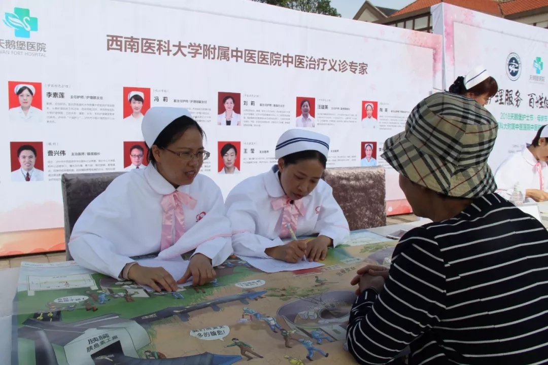 2018年5月12日,西南医科大学附属中医医院“中医护理服务 百姓健康助力”义诊活动走进天鹅堡分院。眼科主任牟琳副教授,李群英教授,呼吸内科主任助理汤俊起主治医师、骨伤科(脊柱组)主治医师李东东、针灸·康复科主治医师王莹以及中医护理等20余名专家为大家免费诊断。