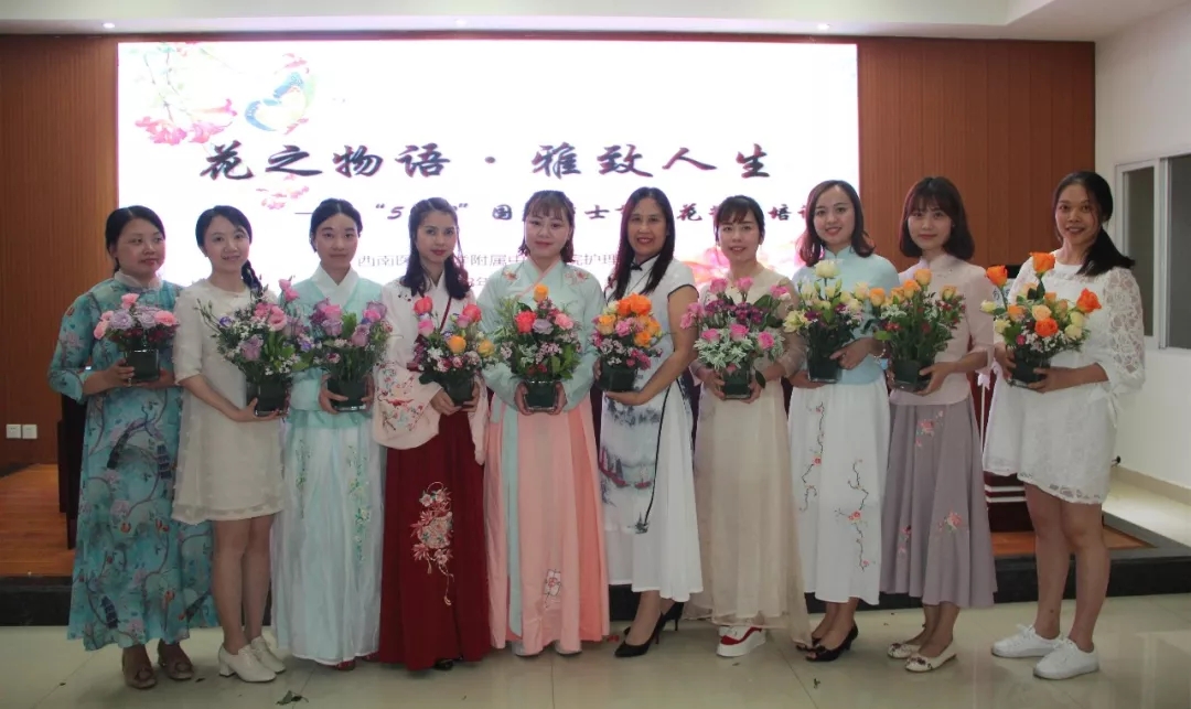 为庆祝第107个国际护士节,陶冶护士情操,提升护士素养内涵,西南医科大学附属中医医院举办了“花之物语·雅致人生”——2018年护士节插花艺术活动。