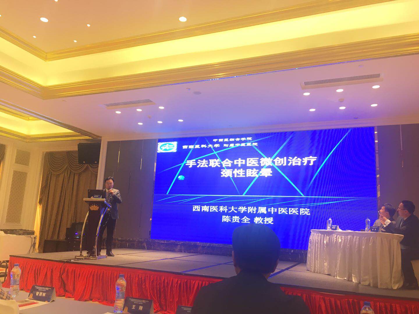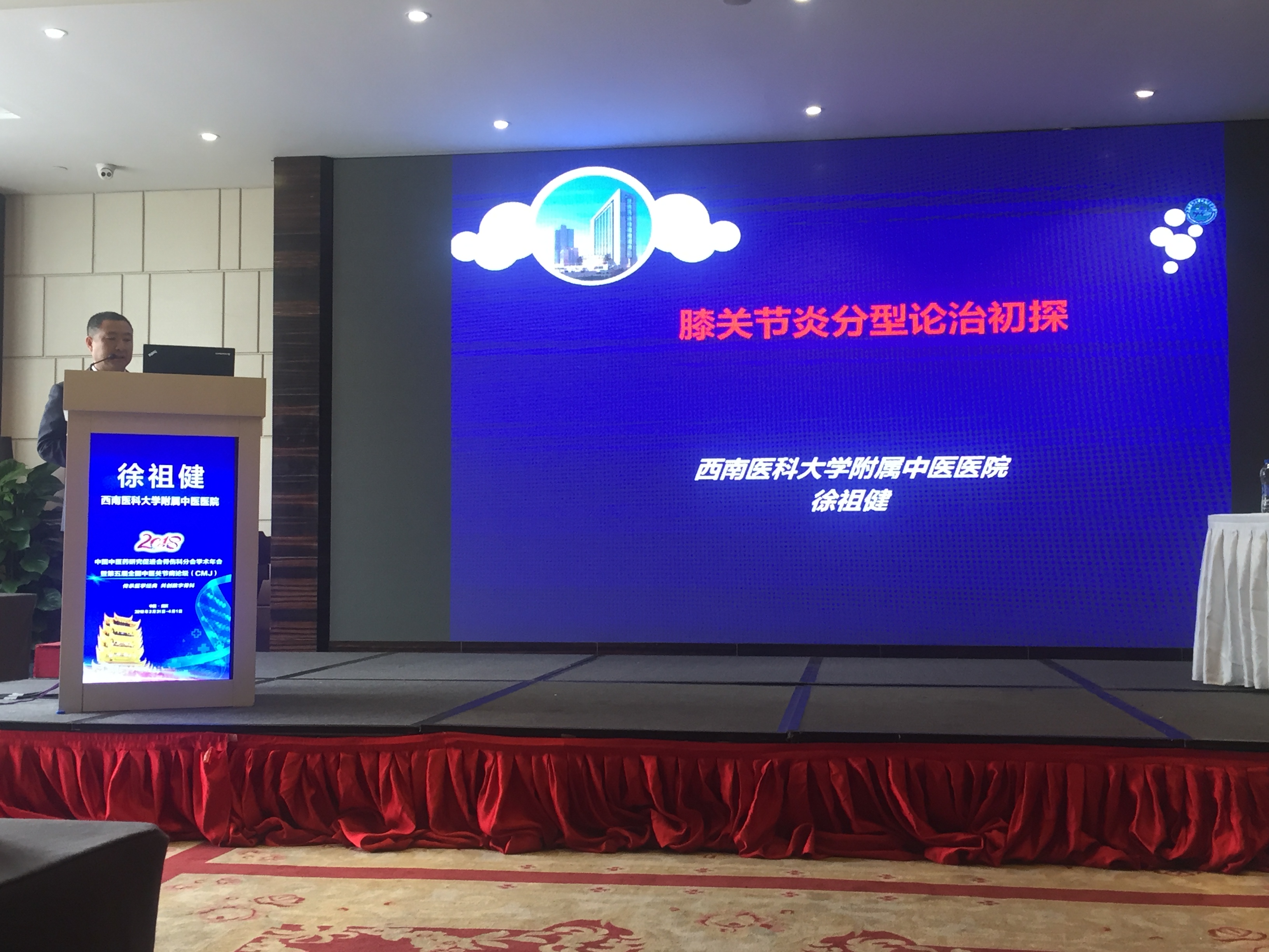 2018年3月31日-4月1日,中国中医药研究促进会骨伤科分会学术年会暨第五届全国中医关节病论坛在武汉举行,西南医科大学附属中医医院骨伤科(关节·足踝组)徐祖健教授作题为《膝关节炎分型论治初谈》专题讲座,针灸·康复科主任陈贵全教授作《手法联合中医微创治疗颈性眩晕》专题讲座。