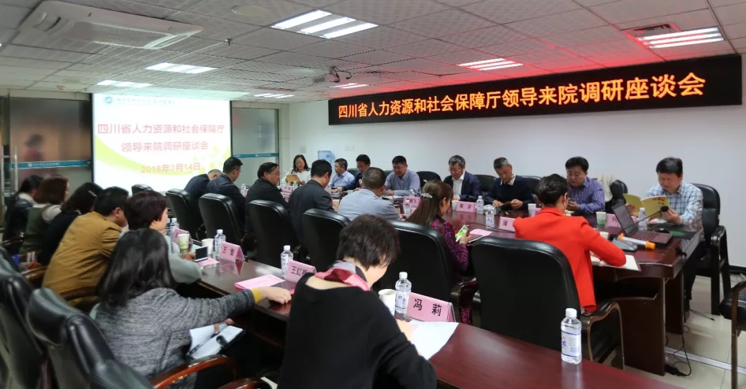 2018年3月14日,四川省人力资源和社会保障厅党组成员、副厅长吴琦一行来西南医科大学附属中医医院调研。西南医科大学附属中医医院党委副书记兼纪委书记赵国强、党委副书记杨文信等领导及相关职能部门负责人参加了座谈会。会议由赵国强主持。