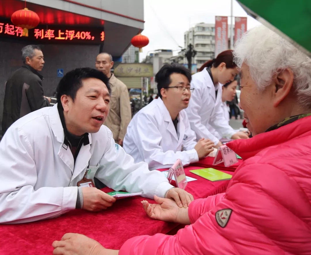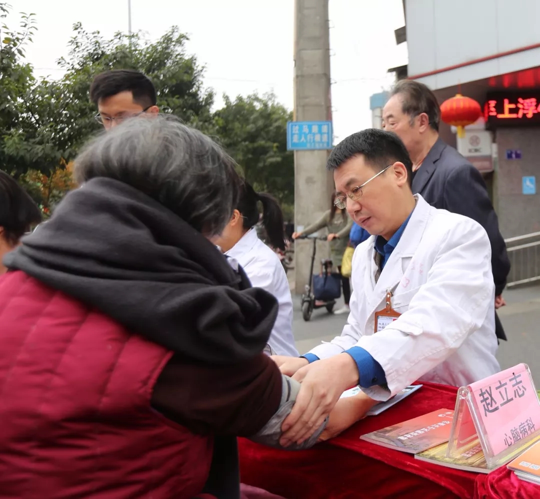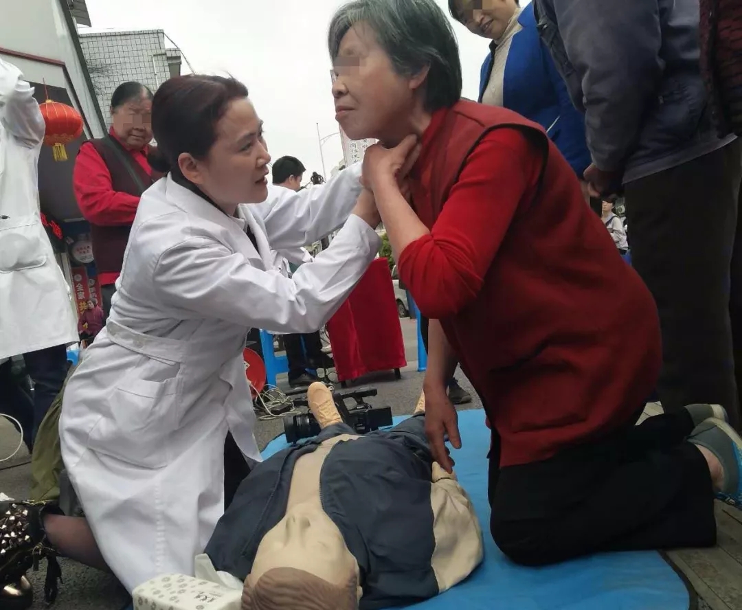 医护人员为前来咨询的群众免费诊断,发放健康宣传资料,讲解胸痛、脑卒中相关知识,并现场教学心肺复苏术,吸引了不少群众参与其中。