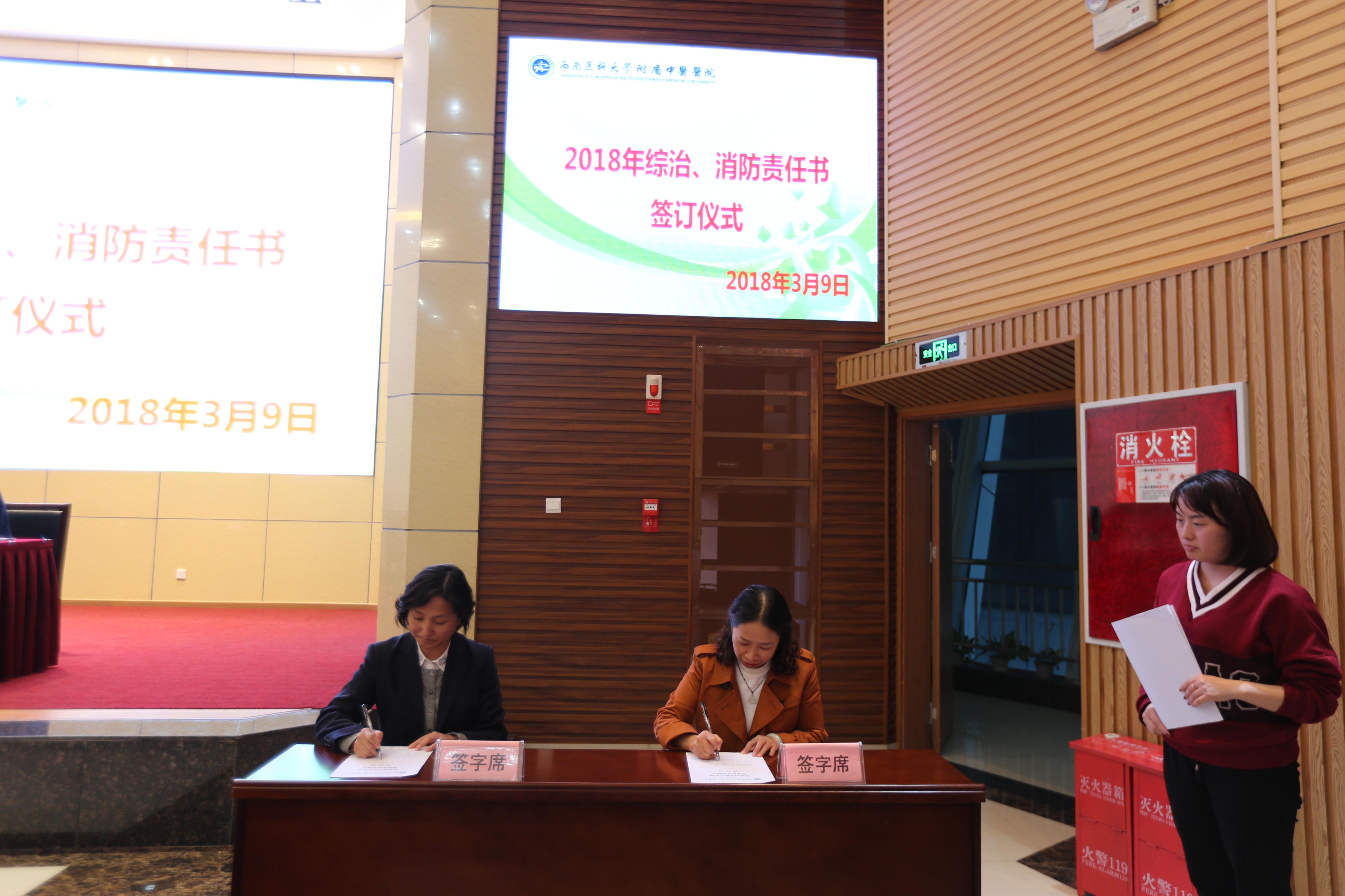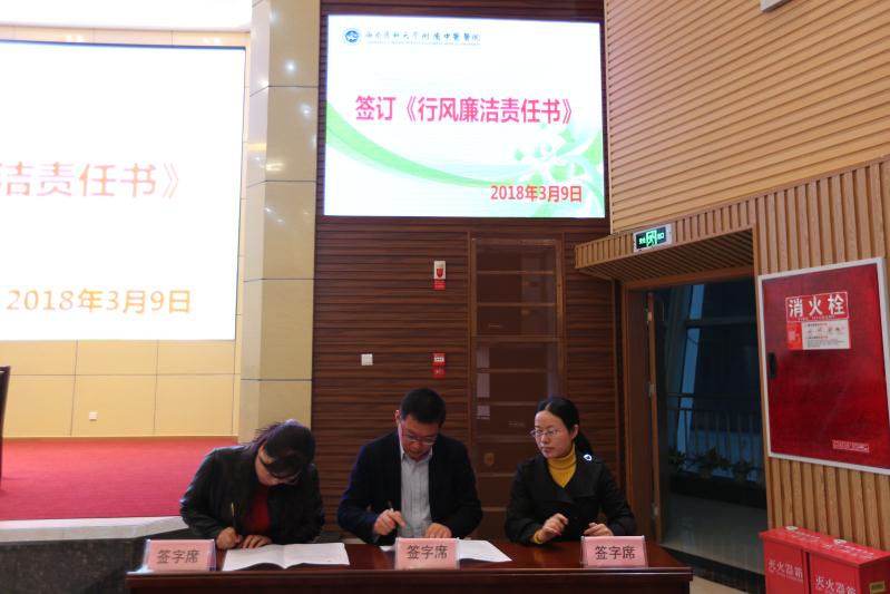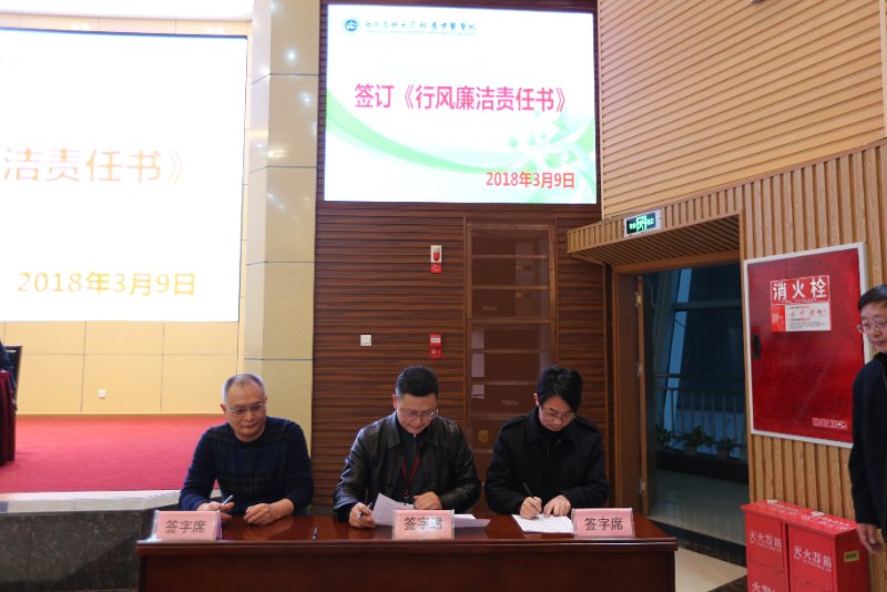 会上,王琳书记和其他院领导代表,分管院领导和分管部门负责人代表,党委书记和支部书记代表签订了《党风廉政建设责任书》;院领导、分管部门、临床科主任、护士长代表签订了《行风廉洁责任书》;王琳书记分别与党支部书记代表签订了《消防》、《综治责任书》;职能部门代表还签订了《防止商业贿赂信息系统数据统计保密协议》。随后,党委副书记纪委书记赵国强做了廉洁纪律讲话。