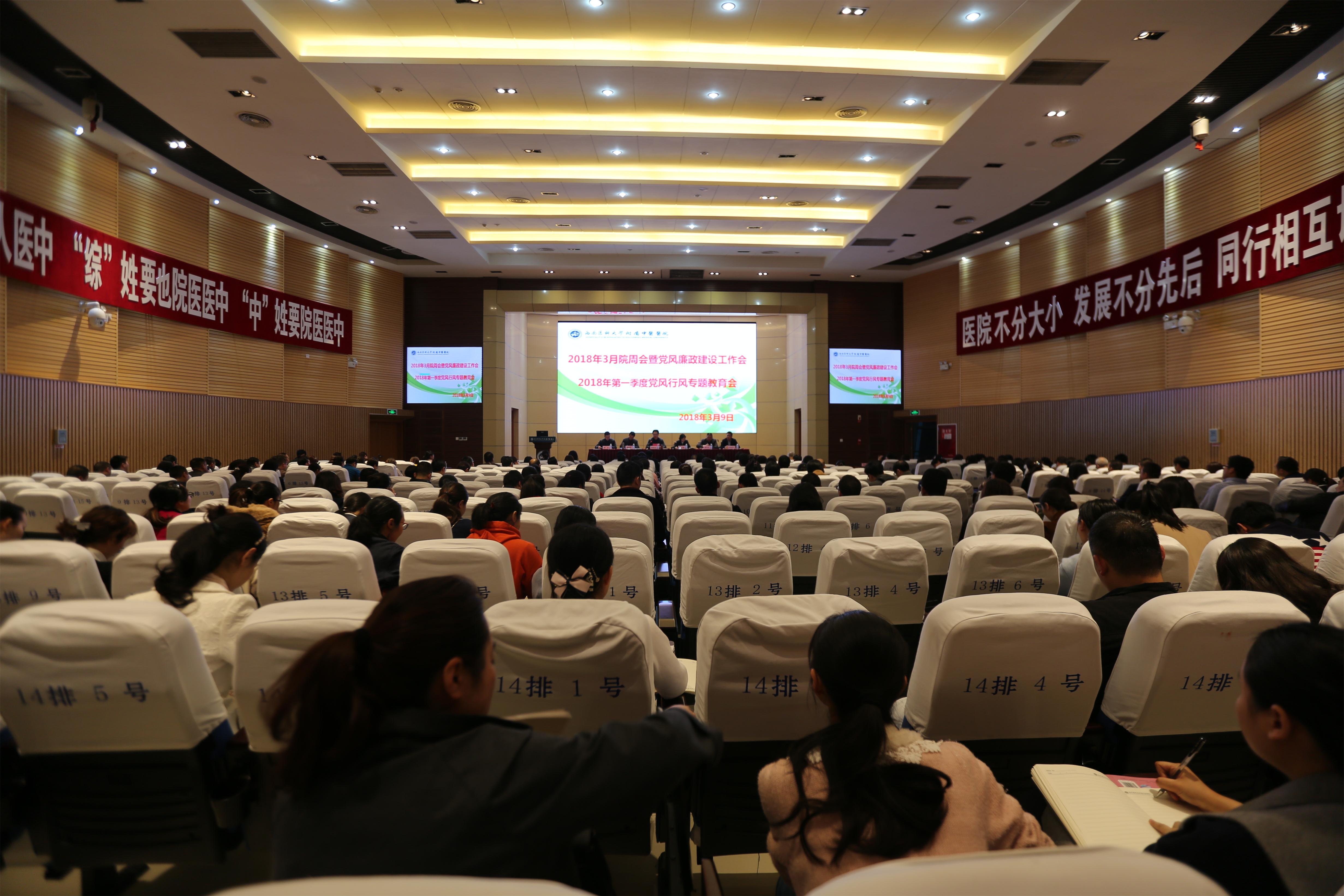 2018年3月9日,我院在第二住院大楼学术演讲厅召开了2018年党风廉政建设工作会暨第一季度党风行风工作教育会,全体院领导、职能部门科级干部、临床及辅检部门科主任、负责人、护士长、行政重点岗位人员、党支部书记共计210余人参加了本次会议。