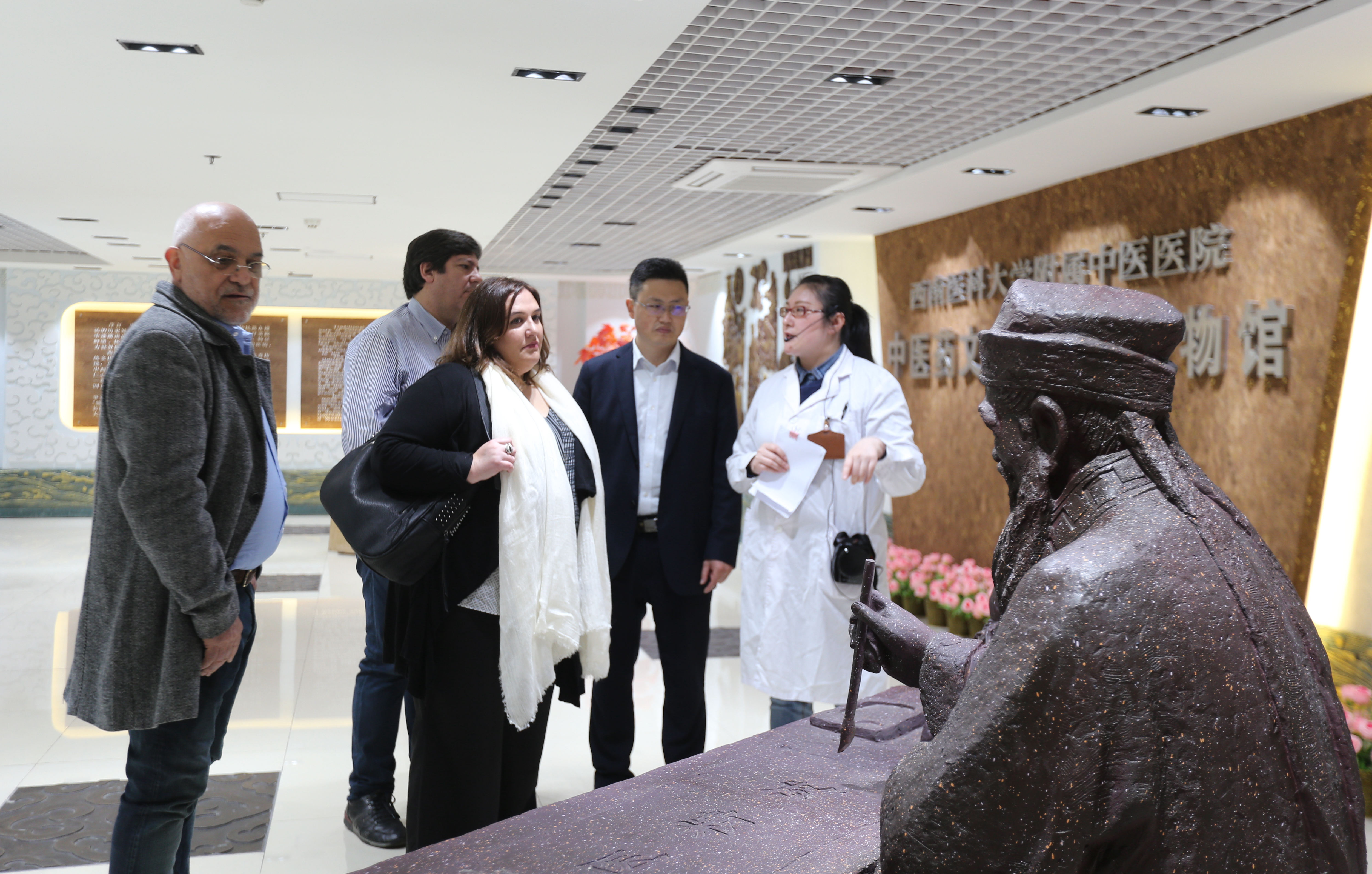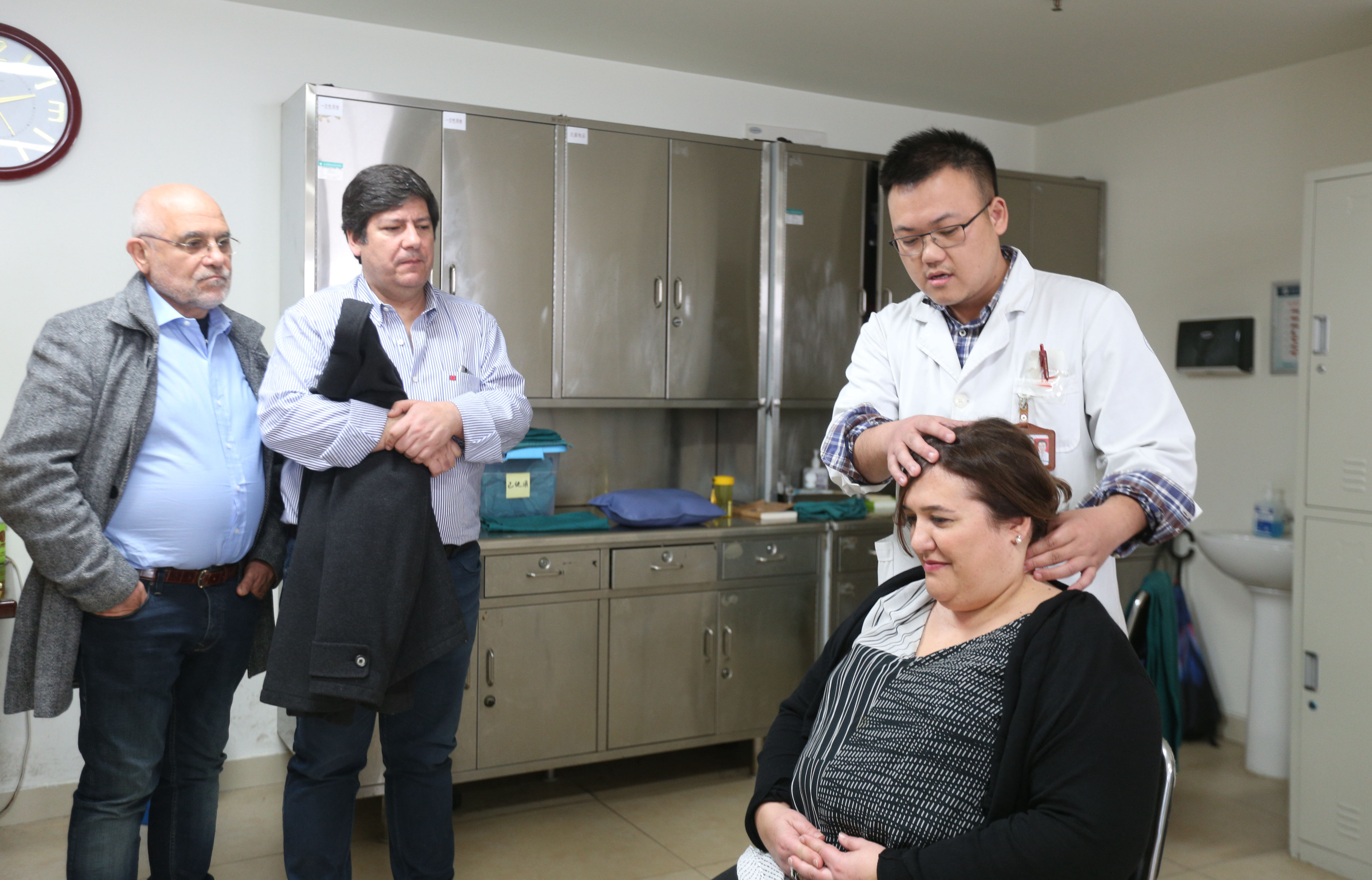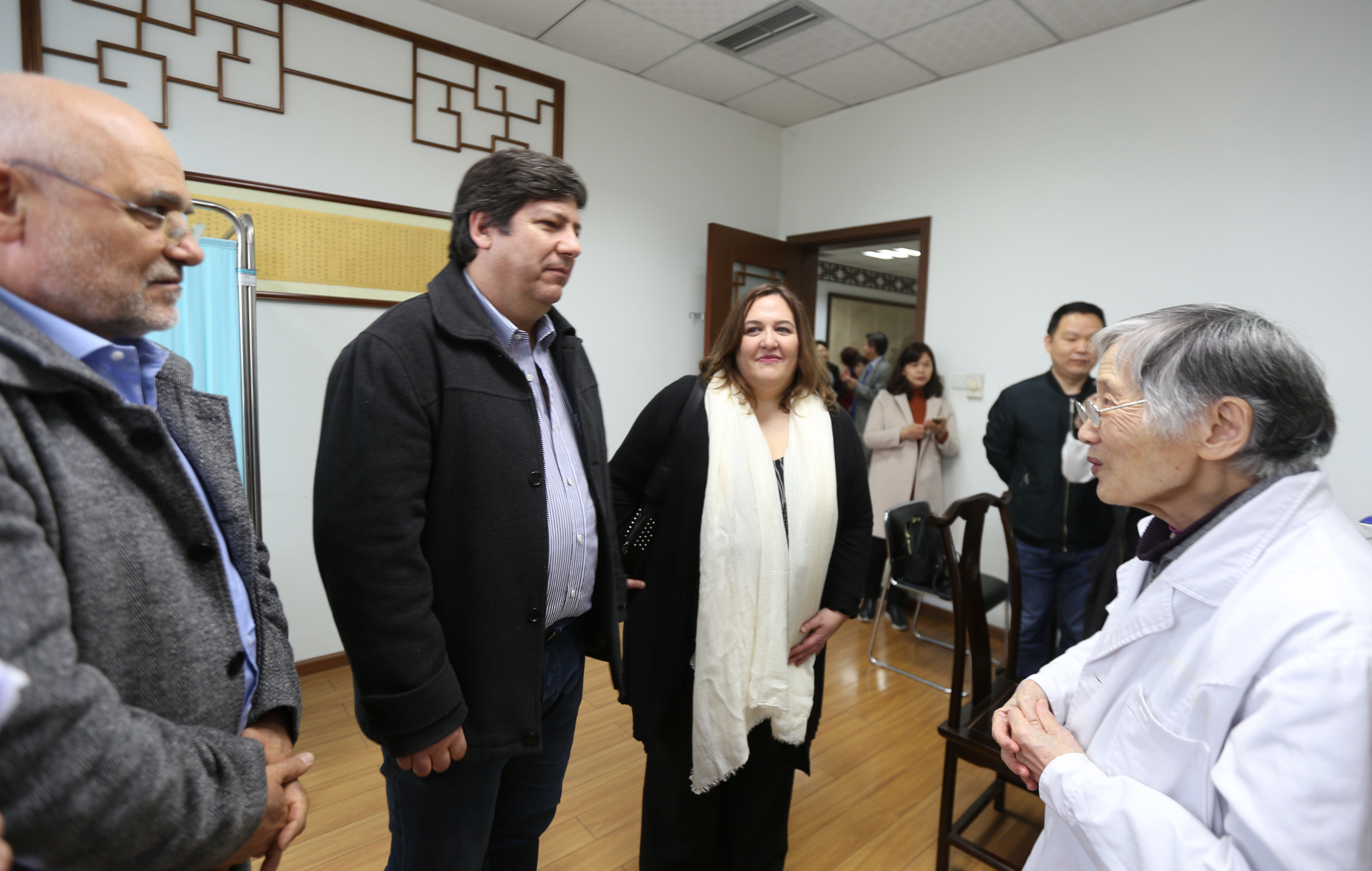 来宾体验中医特色疗法 相关链接:中国-葡萄牙中医药国际合作中心(简称中葡中心)是由科技部和葡萄牙科技基金会共同资助的国家重点研发计划-政府间国际科技创新合作重点专项,主要从事“中药防治神经退行性疾病的合作研究”。中葡中心由西南医科大学支持,西南医科大学附属中医医院负责建设,中心常务副主任王琼博士,团队带头人(PI)为刘新民教授。