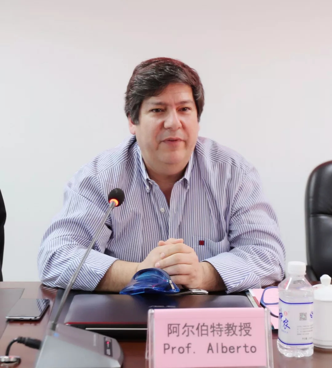 葡方代表阿尔伯特讲话,他介绍了葡萄牙米尼奥大学基本情况后表示,将加强与西南医科大学中西医结合学院·附属中医医院的合作,做好中葡中医药国际合作项目。