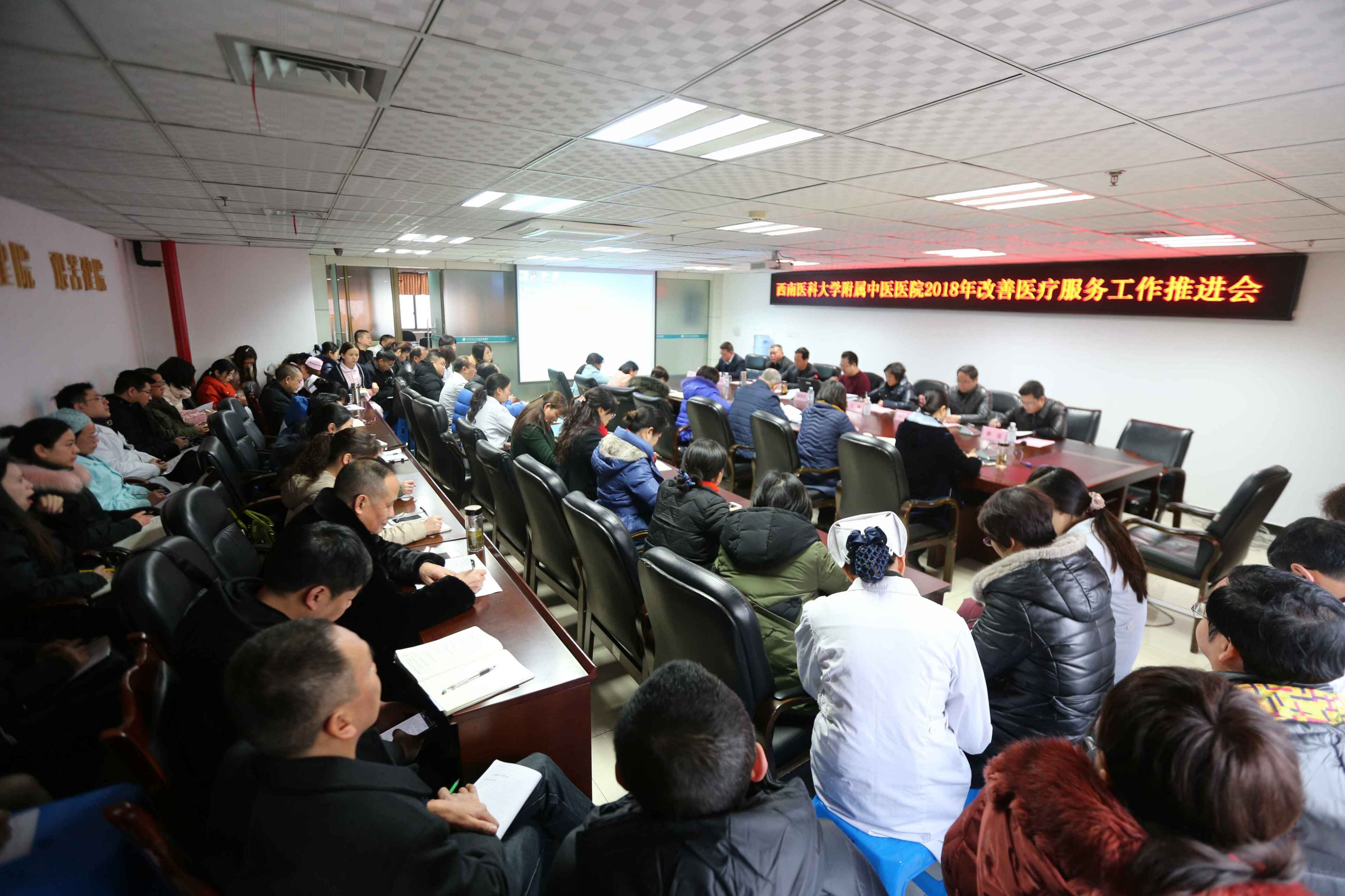 2018年2月11日,西南医科大学附属中医医院召开了2018年改善医疗服务工作推进会。西南医科大学附属中医医院党委书记王琳等领导,相关职能部门负责人,支部书记、部分临床科室、辅检部门负责人参加了会议。