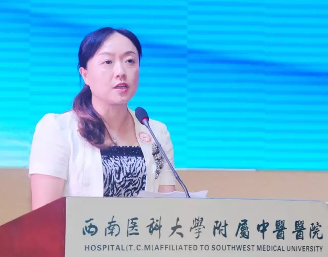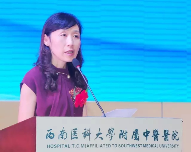 西南医科大学副校长何涛讲话。她对中西医结合学院在科技工作中取得的成绩给予了肯定并介绍了学校科研工作情况,并希望中西医结合学院继续发扬中医特色优势,鼓励广大教职员工积极投身科研工作中,为医院及学校的科研工作做出更大的贡献。