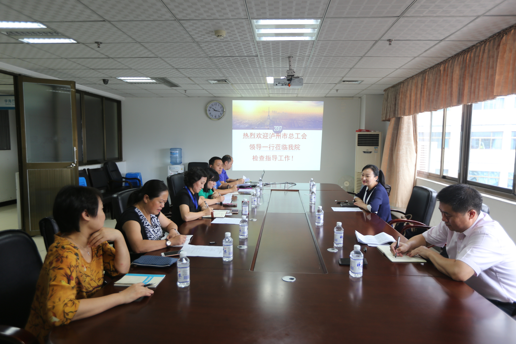 2017年9月6日,泸州市总工会组织部长万晓一行来我院参观调研,我院党委书记王琳及相关职能部门负责人参加了座谈会。 会前,万晓一行在我院相关职能部门负责人陪同下参观了医院门诊大厅、名医馆和中医药文化•院史博物馆等地。