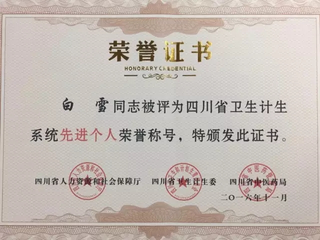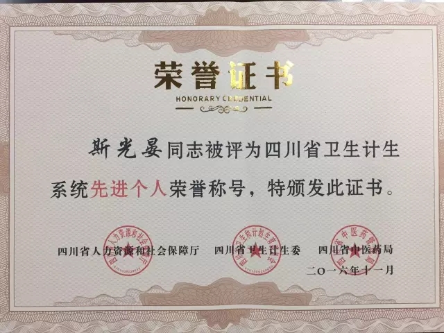 近日,四川省人力资源和社会保障厅、四川卫生和计划生育委员会、四川省中医药管理局联合发文对150个“四川省卫生计生系统先进集体”和400名“四川省卫生计生系统先进个人”予以表彰。