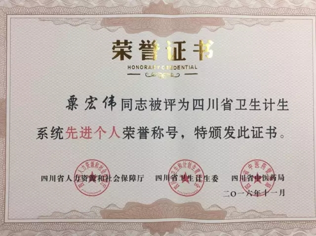 近日,四川省人力资源和社会保障厅、四川卫生和计划生育委员会、四川省中医药管理局联合发文对150个“四川省卫生计生系统先进集体”和400名“四川省卫生计生系统先进个人”予以表彰。 我院心脑病科荣获先进集体荣誉称号;大内科兼心脑病科主任白雪教授、大外科兼泌尿外科主任粟宏伟教授、放射影像科主任斯光晏副教授、骨伤科(创伤组)护士长李同莲副主任护师荣获先进个人荣誉称号。