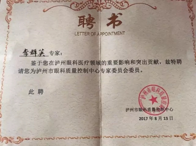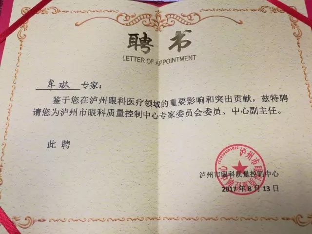 近日,泸州市眼科质量控制中心第一届第四次会议在泸州召开。我院眼科主任牟琳副教授当选为专家委员会委员、中心副主任,李群英教授和张可杰教授当选委员。
