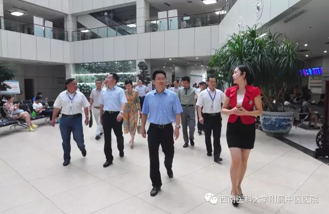 2017年8月2日,四川省及泸州市食品药品监督管理局领导一行莅临我院检查指导工作。四川省食品药品监督管理局局长鞠波,泸州市市委副书记、市长刘强,西南医科大学副校长何涛,西南医科大学附属医院副院长徐勇,我院相关行政职能部门人员参加了座谈会。会议由杨文信主持。