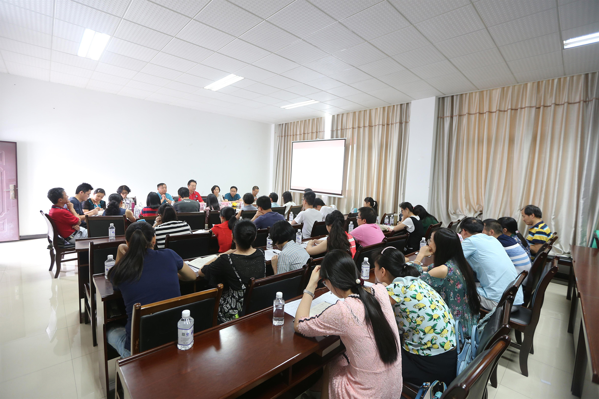 7月7日下午,中西医结合学院在城北校区海川楼召开基础教师大会,总结本学期工作和安排布置假期工作。党委书记王琳、党委副书记杨文信、副院长刘建等学院领导,全体基础教师以及教务科、学生科、基础办公室全体人员参加了会议。会议由刘建副院长主持。