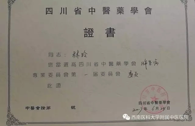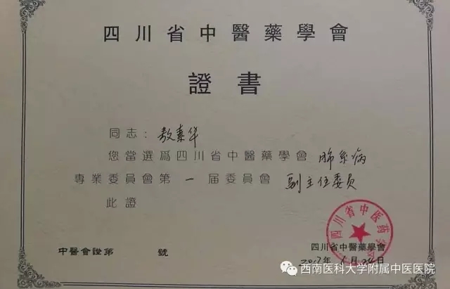 2017年6月23日,四川省中医药学会肺系病专业委员会第一届肺系病学术研讨会在成都举行。我院呼吸内科主任敖素华教授当选副主任委员,李修元、林玲主治医师当选委员。同时,呼吸内科2017级研究生郑林洁作为青年医师代表在会上作了《泸州地区支气管扩张症住院患者临床特征分析》专题报告。