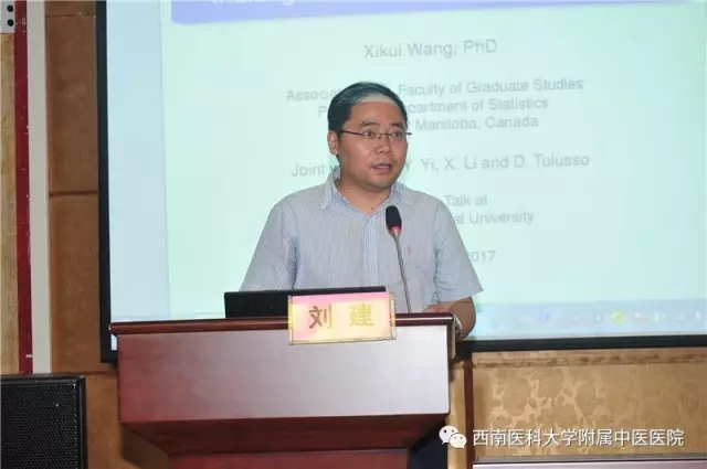 2017年6月27日,加拿大曼尼托巴大学研究生副院长、统计学系教授王熙逵博士来我院参观交流。医院各临床科室主任、护士长、研究生等200余人参加了这次讲座。讲座由副院长刘建主持。
