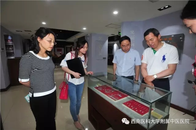 会前,王熙逵博士在西南医大中医院党委书记王琳等相关职能部门负责人的陪同下,参观了医院门诊部、中医药文化·院史博物馆等地。