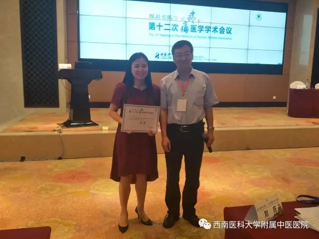 会上,张英副教授凭借论文《右美托咪定治疗神经病理性疼痛疗效的临床观察》和《右美托咪定对神经病理性疼痛患者红细胞流变学影响》分别荣获四川省医学会第十二次疼痛医学学术会优秀论文一等奖和三等奖。