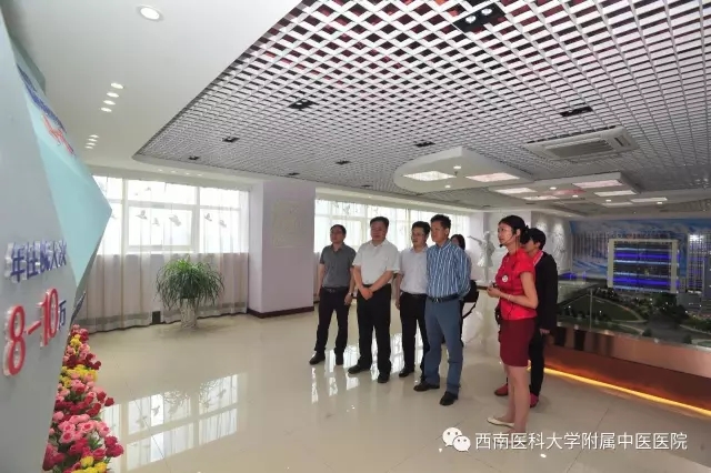 2017年5月25日,中国医学科学院(北京协和医学院)药物研究院副院长杜冠华一行莅临我院指导工作。来宾们在西南医科大学附属中医医院副院长李志、刘建等领导陪同下,参观了医院城北门诊、制剂室、中医药文化·院史博物馆等地。