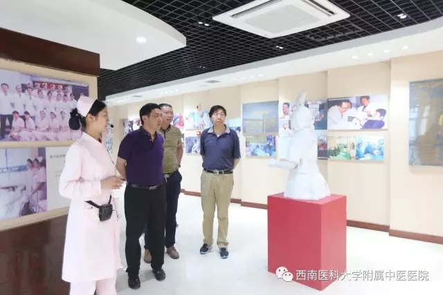会前,来宾们在西南医科大学附属中医医院副院长谢长友的陪同下,参观了医院中医药文化•院史博物馆、医学美容中心等地。