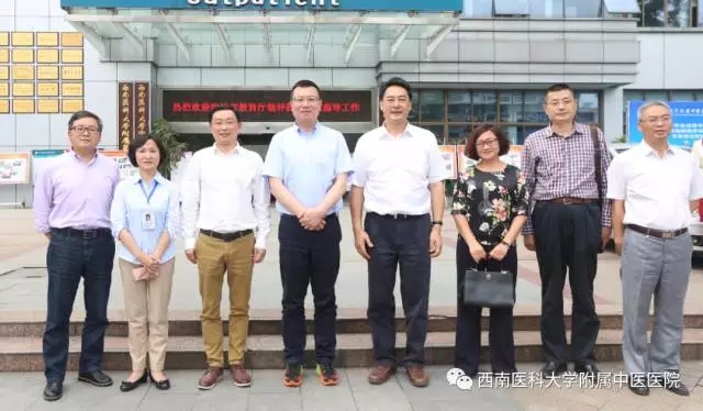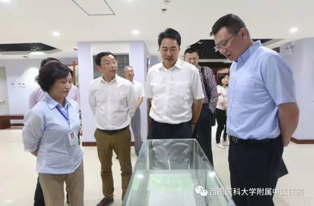 2017年5月14日,四川省教育厅副厅长汪小帆一行来我院指导工作。 来宾们在西南医科大学党委书记廖斌,校长何延政,我院党委书记王琳等领导的陪同下参观了医院城北门诊部、中医药文化·院史博物馆等地。