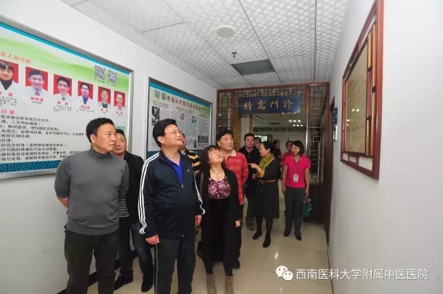 田亚东主席一行在党委书记王琳等党政领导和相关职能部门负责人陪同下实地调研了我院中药制剂室、名医馆、专家特需门诊、中医药文化·院史博物馆和健身中心等地。