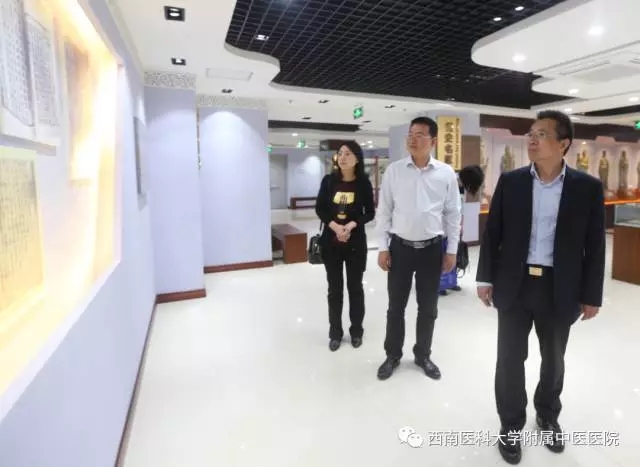 会前,王忠教授在我院院长助理徐厚平及相关职能部门负责人陪同下参加了医院门诊大厅、名医馆、中医药文化·院史博物馆等地。
