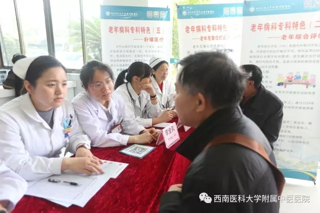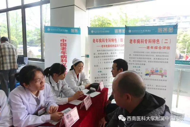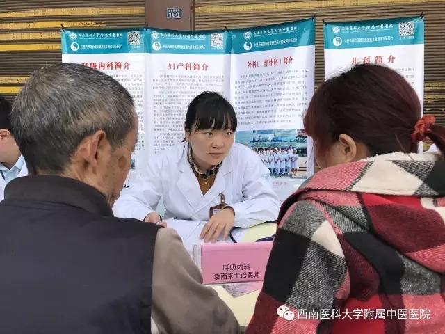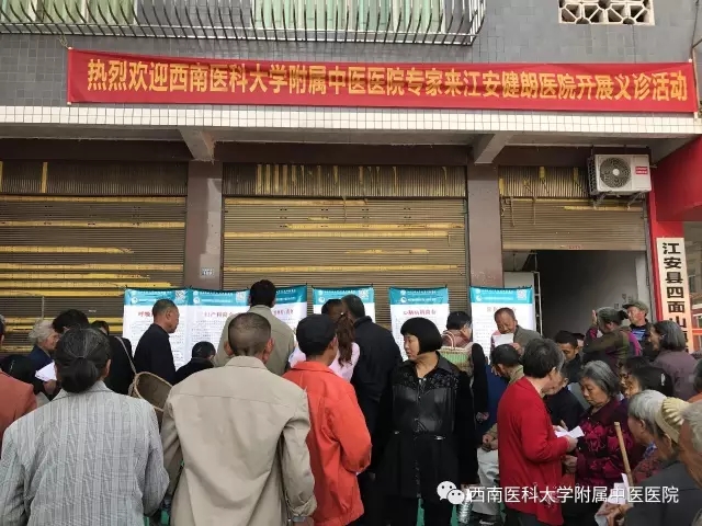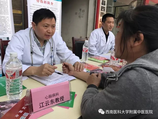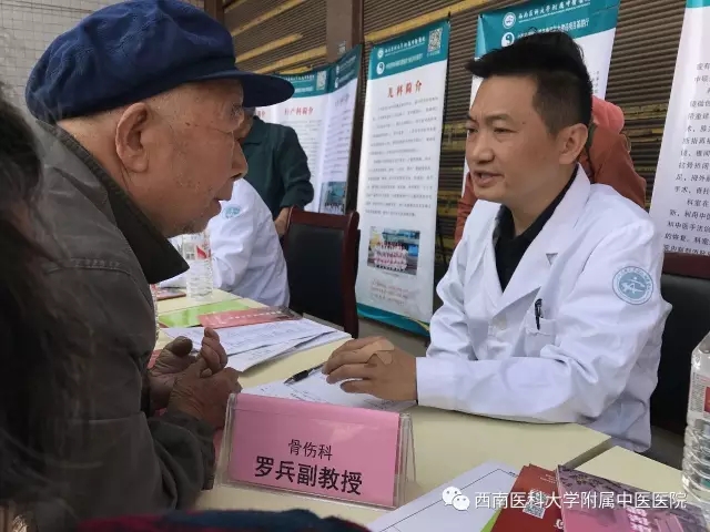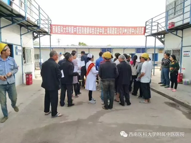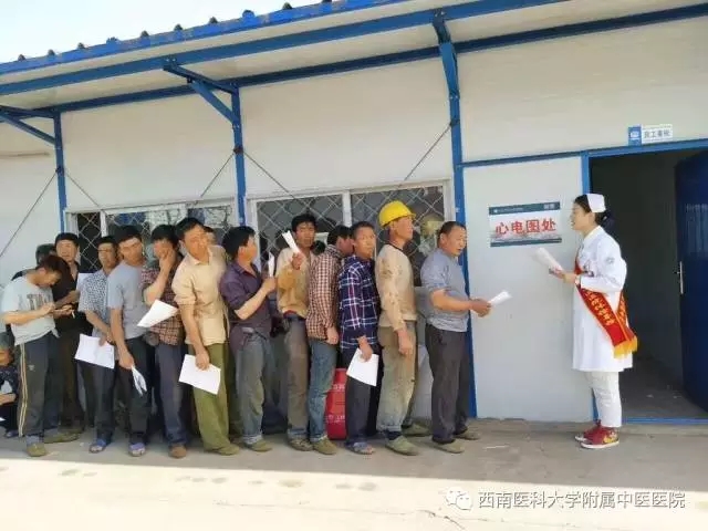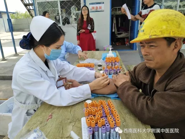 第一站:江安健朗医院 义诊现场 大内科副主任江云东教授为患者检查 儿科主任冉志玲教授为患者检查 骨伤科罗兵副教授为患者检查 呼吸内科袁雨来主治医师为患者检查 普外科黄恒主治医师为患者检查 妇产科刘娅住院医师为患者检查 2017年4月18日,我院大内科副主任江云东教授、儿科主任冉志玲教授、骨伤科(创伤组)罗兵副教授、呼吸内科袁雨来主治医师、普外科黄恒主治医师、妇产科刘娅住院医师一行在江安健朗医院开展义诊活动。专家在现场为前来咨询的群众诊断,受到当地群众欢迎。 第二站:城北新院门诊 老年病科义诊现场 2017年4月18日,我院老年病科在城北新院门诊大厅开展义诊活动。专家在现场为前来咨询的群众答疑解惑。义诊现场,医护人员除了为前来就诊的患者免费体格检查、血压、血糖测试等外,还为大家发放了老年病科介绍、老年常见疾病及健康科普资料等。 据了解,此次老年病科的义诊活动将持续到4月23日(本周末),欢迎老年朋友们前来咨询和就诊。 第三站:健康管理·体检中心走进工地 4月18日上午,西南医科大附属中医医院健康管理·体检中心走进中铁上海局建筑公司泸州众创中心项目部工地,为工地上200余名工人做了健康体检。 据了解,此次西南医科大学附属中医医院健康管理·体检中心直接将健康体检车开进该公司工地现场,仅用了4个小时时间就完成了200余名建筑工人的体检任务。 “我还是第一次看到这样的体检车,很方便,既节约了时间,又不用我们亲自去医院。” “今天天气这么热,但医护人员们都不辞辛劳为我们检查,值得赞扬。” …… 对于医护人员的耐心检查,公司负责人及现场工人都拍手称赞。 相关链接:健康体检车检查项目包括:常规生化检查、B超、心电图、胸片、身高、体重、血压、幽门螺杆菌检测等。