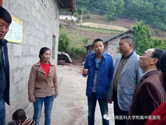 谢长友(右二)与唐波(右三)看望走访贫困户