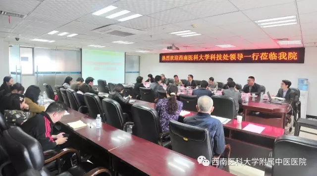 2017年4月5日,西南医科大学科技处处长龙汉安一行莅我院指导工作,对医院科研及博士点申报工作进行了调研和论证。我院党委书记王琳等党政领导和相关职能部门负责人参加了会议。