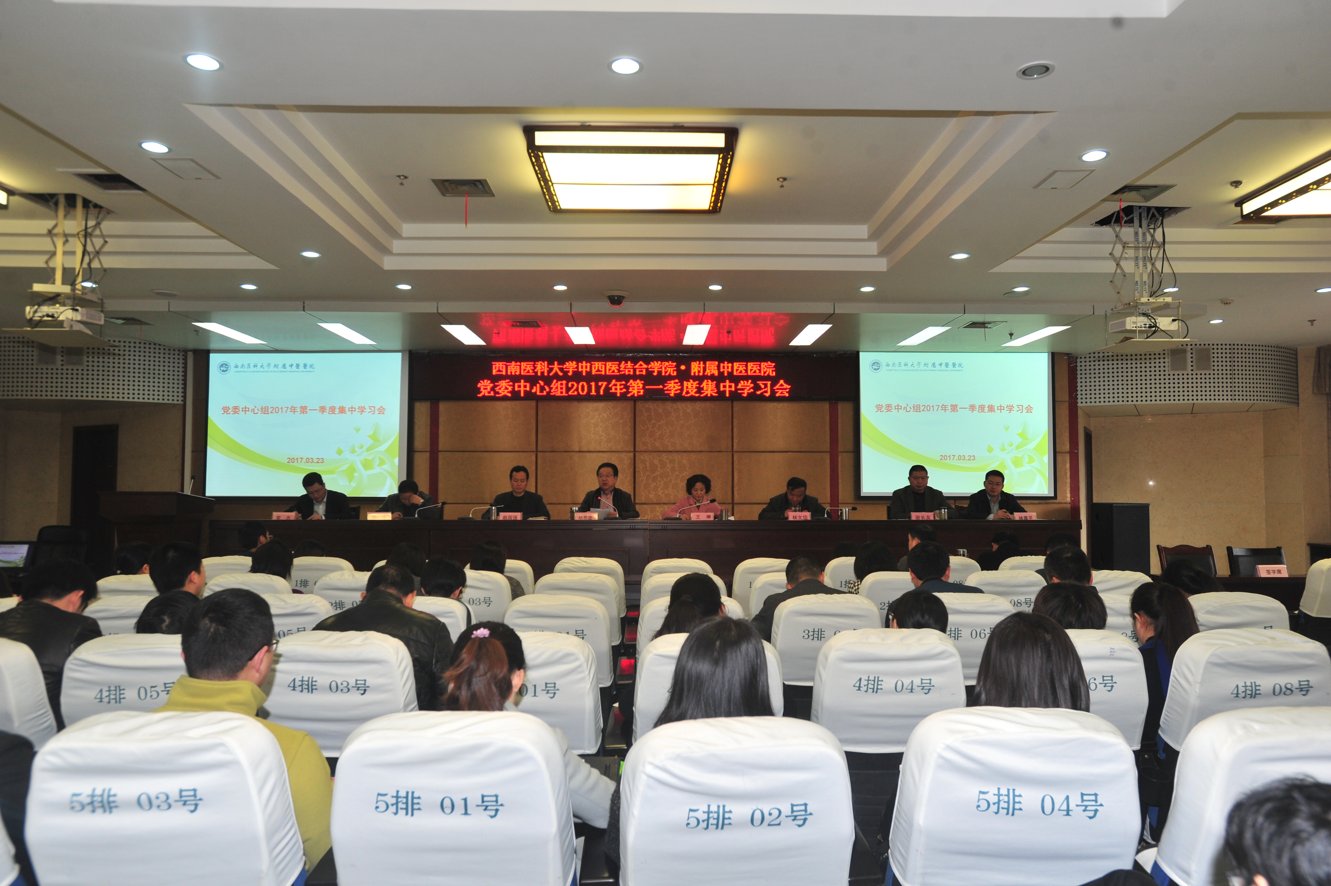 会议现场 2017年3月23日下午,我院在学海厅召开党委中心组2017年第一季度集中学习会暨党风廉政建设工作会,全体院领导、科级干部、党支部书记共计60余人参加了会议,会议由医院党委书记王琳主持。