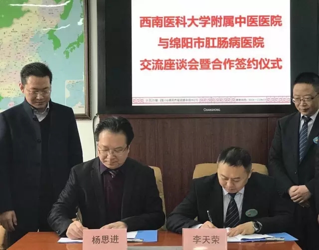 2017年2月22日,我院与绵阳市肛肠病医院签约授牌仪式举行,我院绵阳市涪城区卫生和计划生育局副局长王洪川、绵阳市肛肠病医院院长李天荣以及我院相关职能部门和临床科室负责人等参加了此次活动。