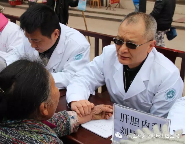 义诊现场 肝胆病科刘鹏教授为患者诊断 脾胃·风湿免疫病科主任肖国辉教授为患者诊断 骨伤科罗兵副教授为患者诊断 水井沟急诊科副主任晏新主治医师为患者诊断