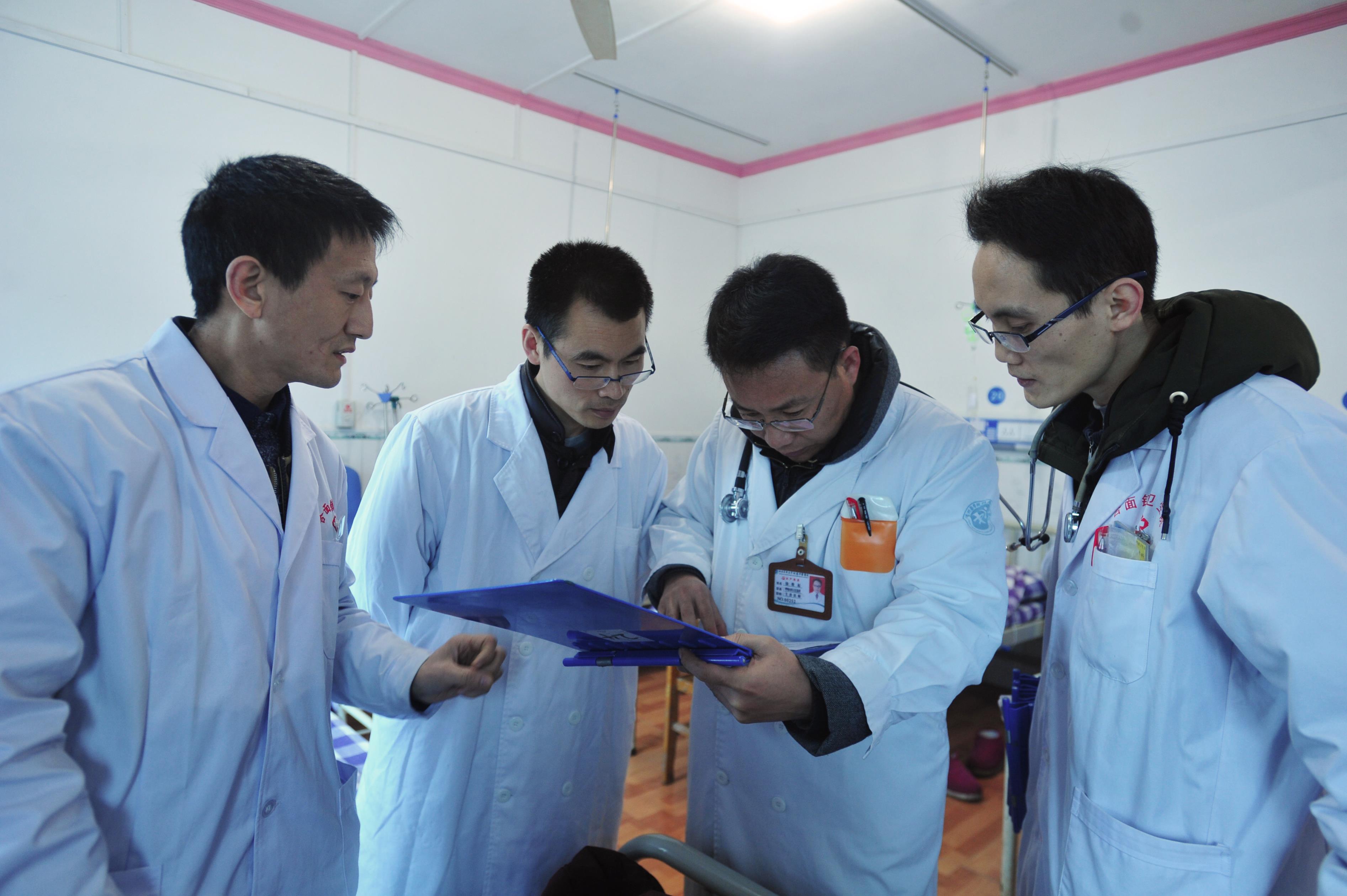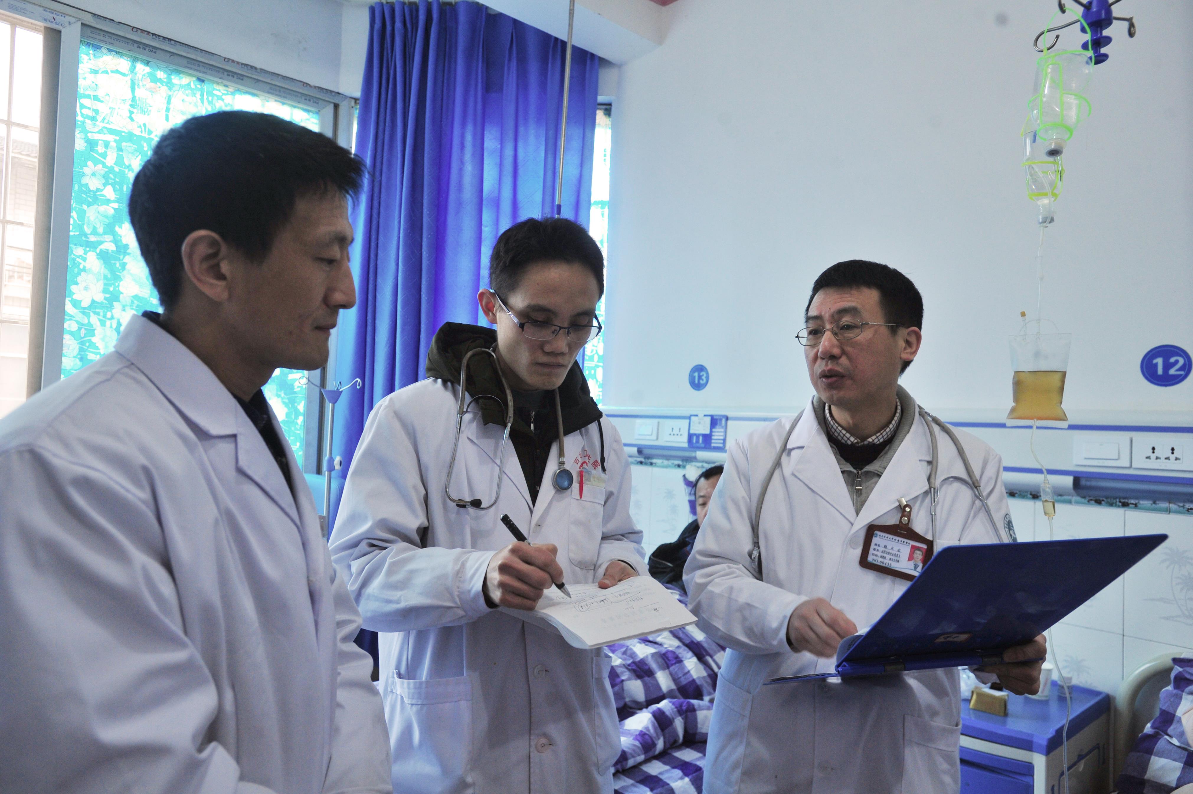 心脑病科赵立志副教授(右一)进行疑难病例查房 脾胃·风湿免疫病科向未主治医师(左二)进行疑难病例查房 呼吸内科汤俊起主治医师(右一)进行疑难病例查房 义诊现场