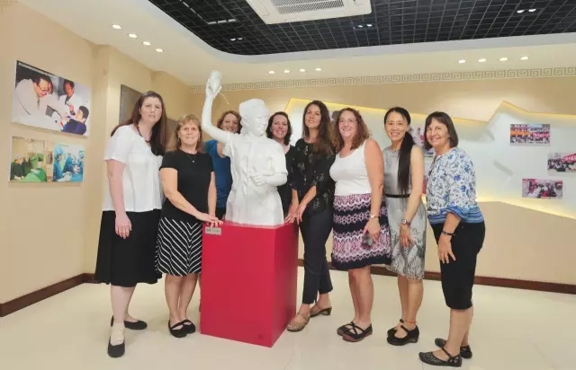 2016年9月22日,美国医疗志愿者一行8人来我院参观交流。 参观妇产病区 中医药文化·院史博物馆合影 中医体验 门前广场合影留念 来宾们在我院党委书记王琳等陪同下参观了医院名医馆、妇产病区、中医药文化·院史博物馆、针灸·康复科和健身中心等地,对医院针灸推拿和康复治疗等表现出了浓厚的兴趣,并进行了体验。