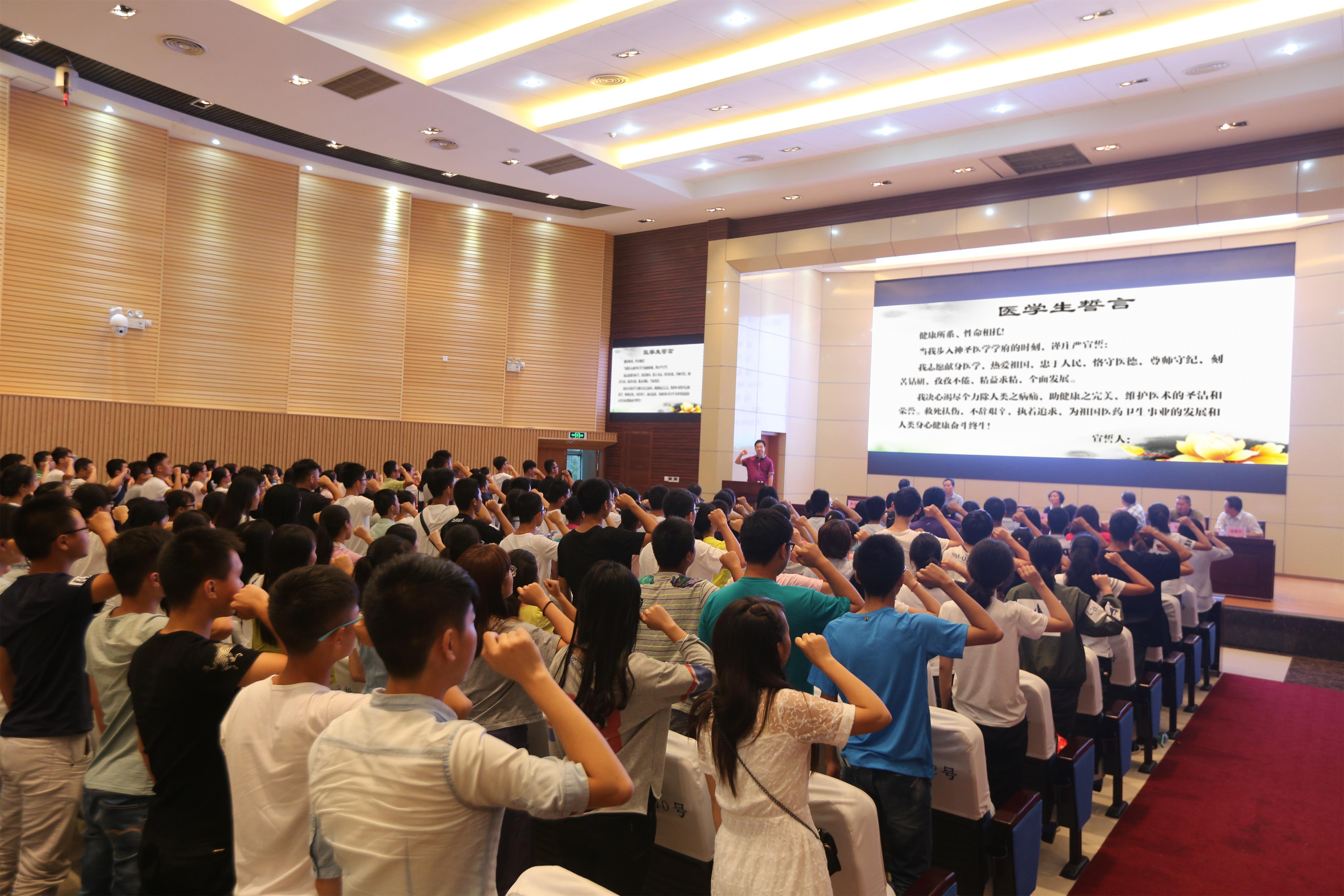 宣誓 王琳致辞,她对411名新生的到来表示欢迎并介绍了中西医结合学院教育教学管理情况。她希望2016级新生要献身医学,德高艺精;要规划未来,学会生活;要矢志不渝,志存高远;要勤于实践,勇于创新,为实现自己的医学梦而不断努力奋斗。