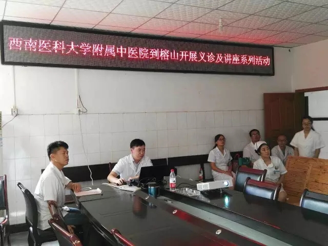 2016年8月13日,我院肝胆病科、肛肠科、泌尿外科、肝胆外科、腔镜中心等科室专家走进合江县榕山镇,对该镇的居(村)民进行免费的义诊和健康咨询。 义诊现场 讲座现场 合影留念 另外,腔镜中心副护士长兰勇、感染管理办公室相关人员还为榕山镇卫生院医护人员作了《大肠癌的筛查》和《医院感染管理防控相关知识》专题讲座。