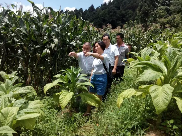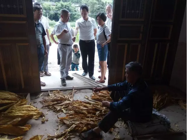 党委书记王琳一行(后排右一)查看村民烤烟情况